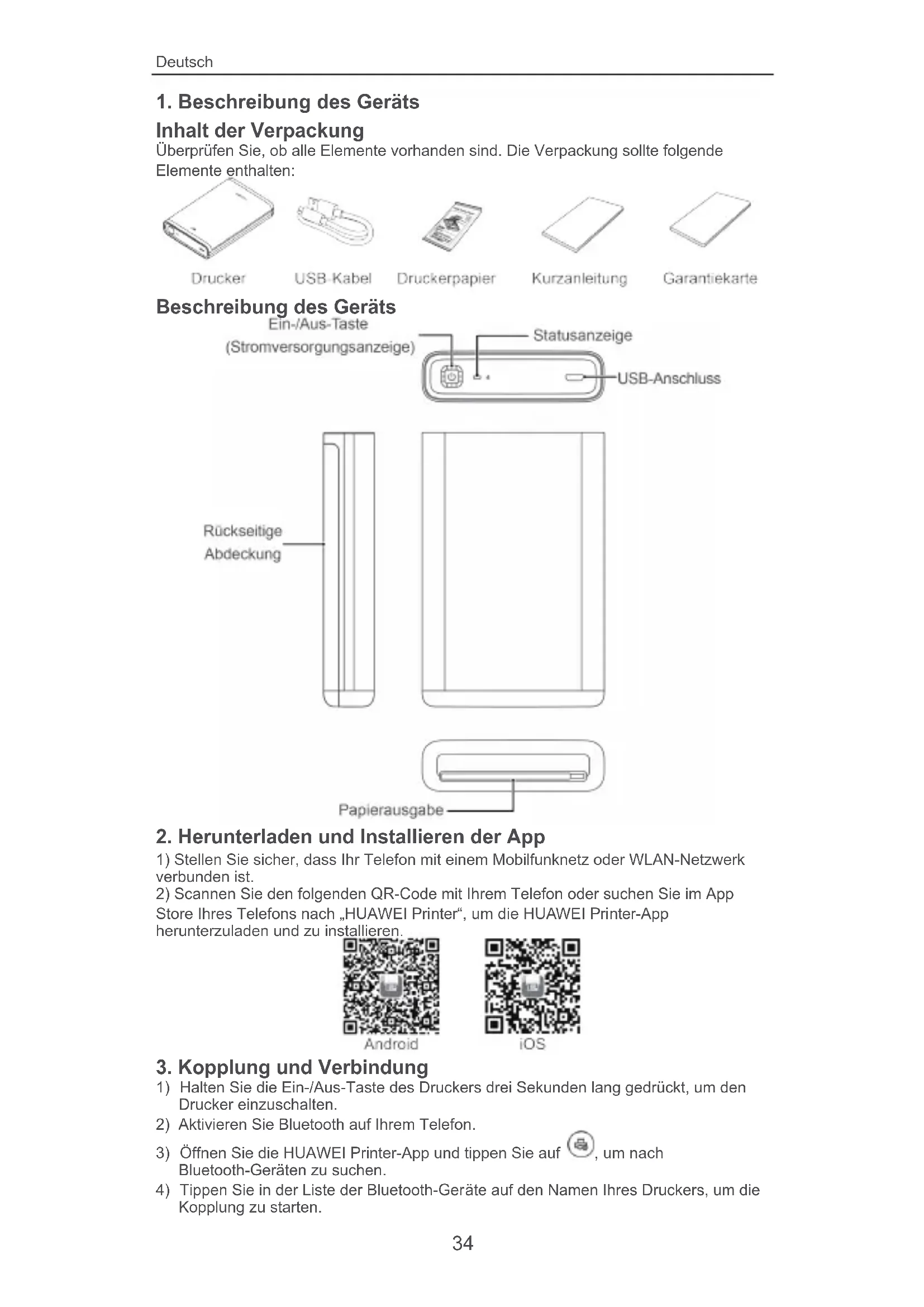 Finden Sie kostenlos die Bedienungsanleitung des Geräts Pocket Photo Printer HUAWEI als PDF.