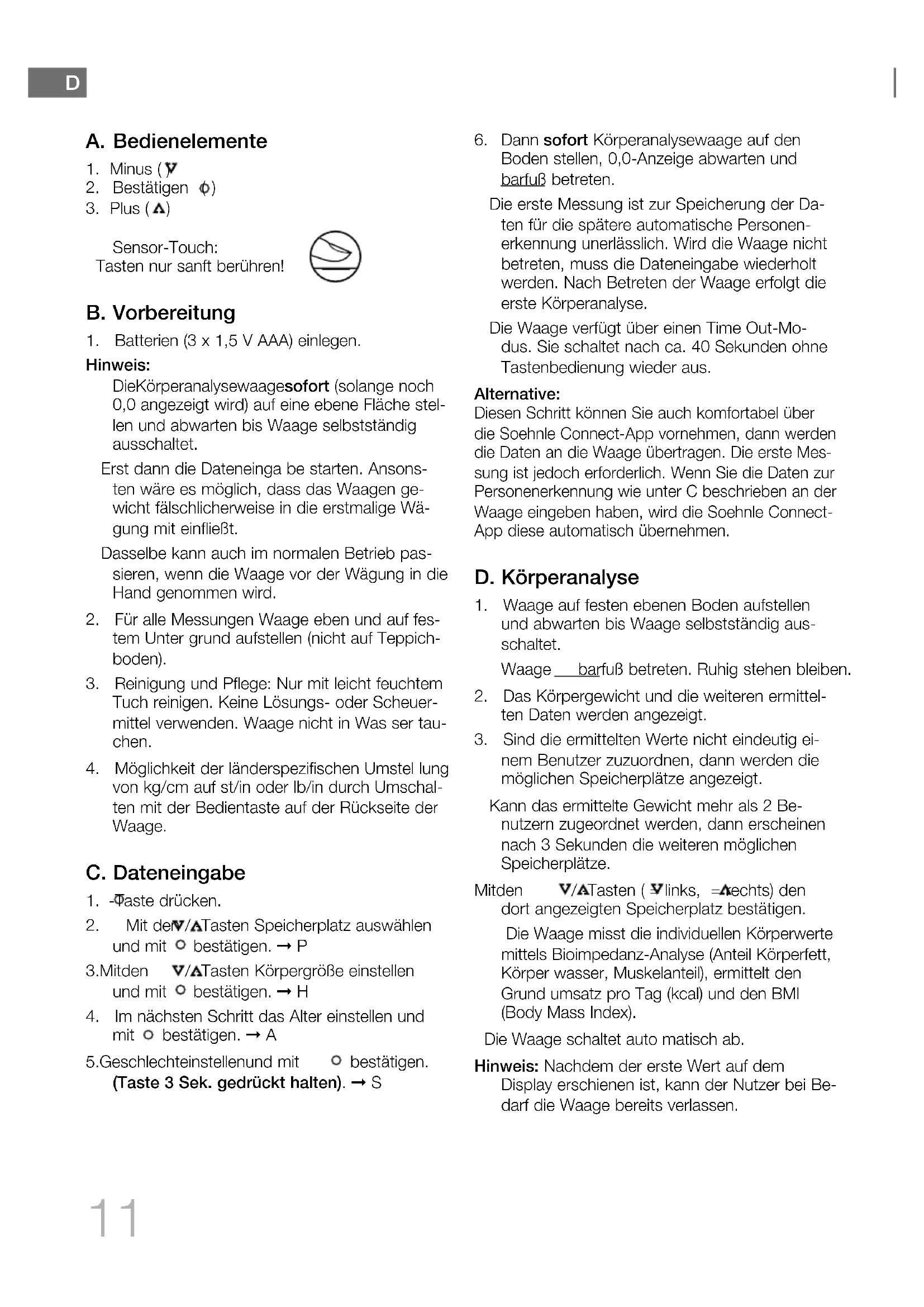 D BEDIENUNGSANLEITUNG 11