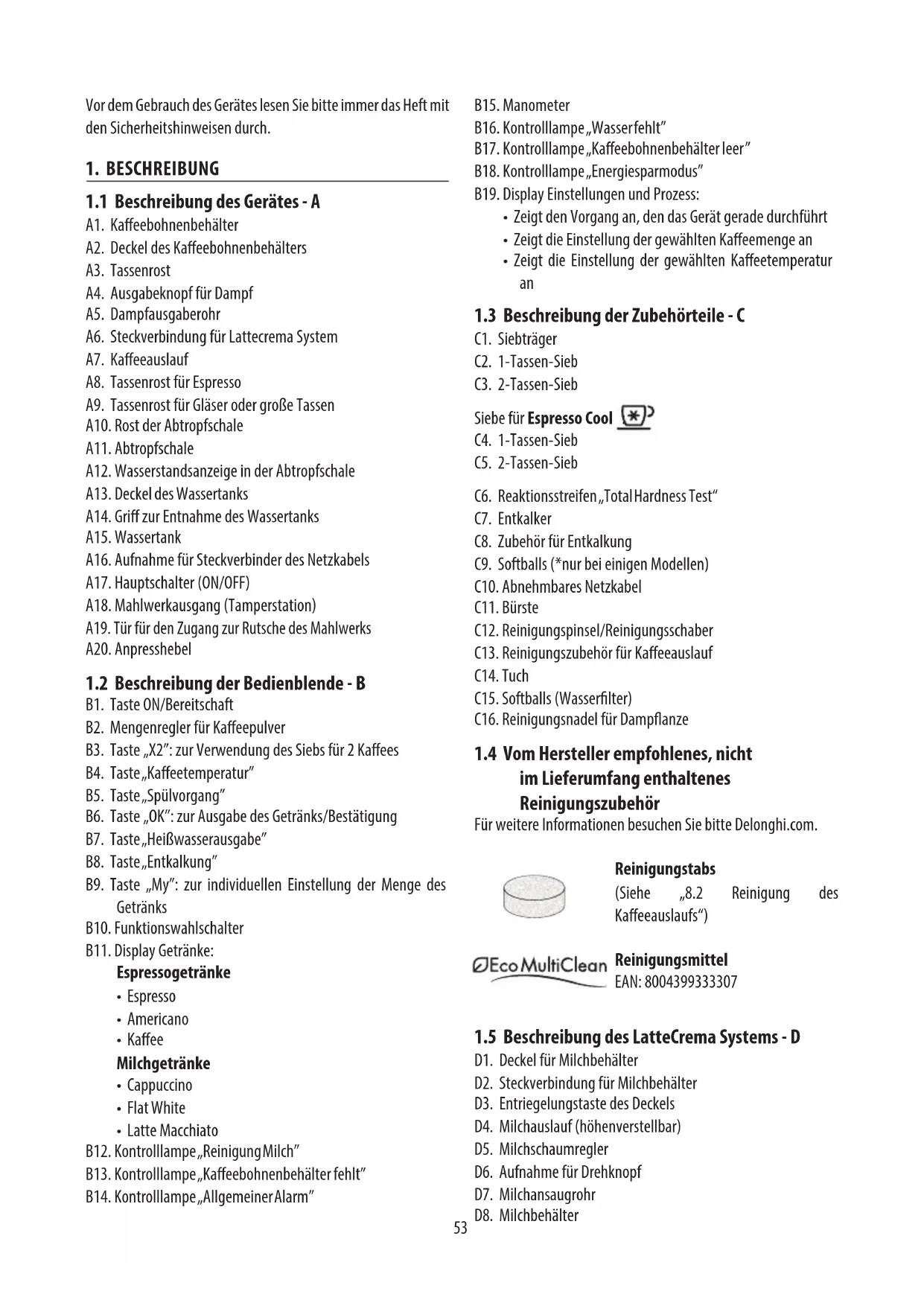 1.5 Beschreibung des LatteCrema Systems - D