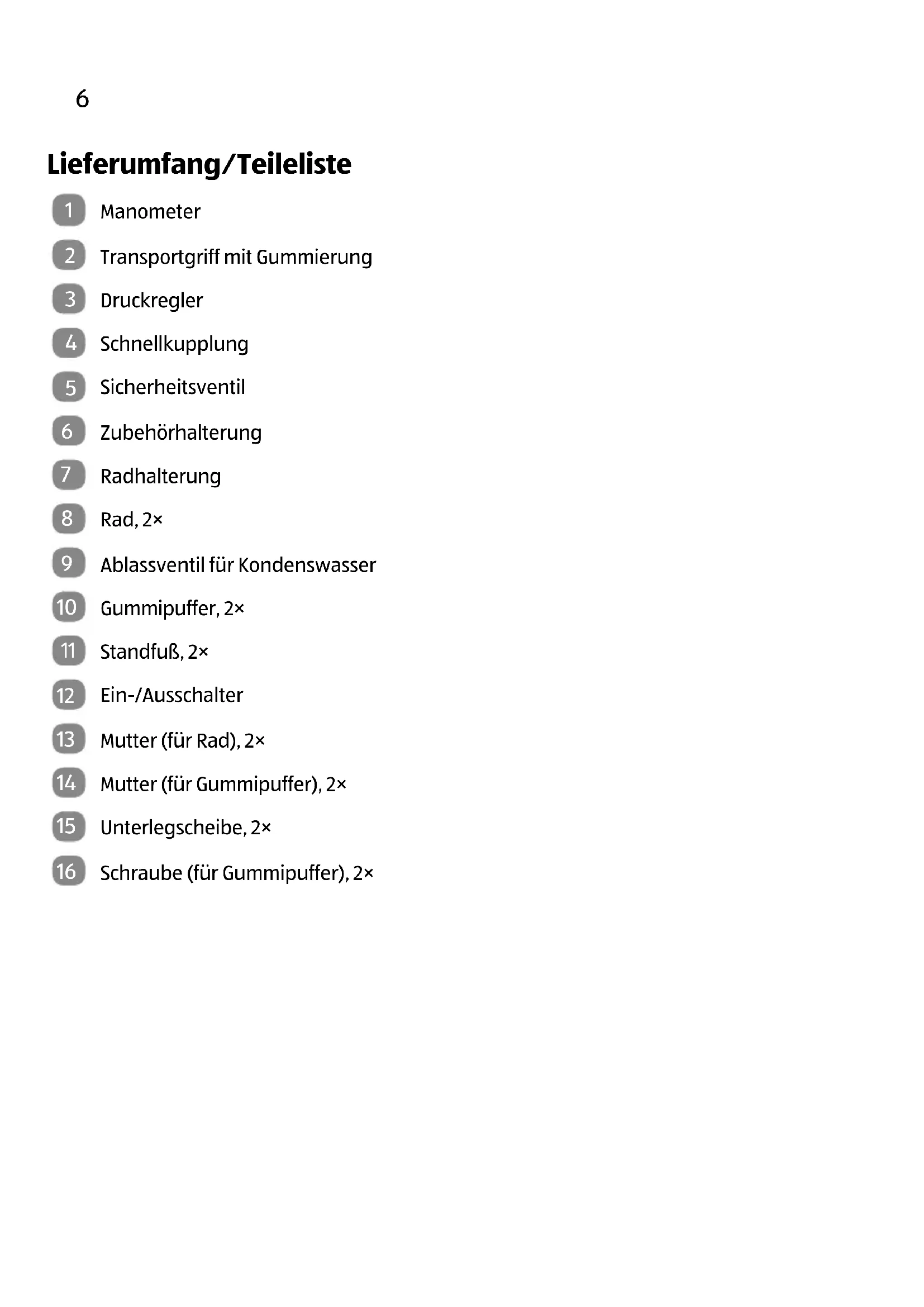- Lieferumfang/Teileliste p. 6