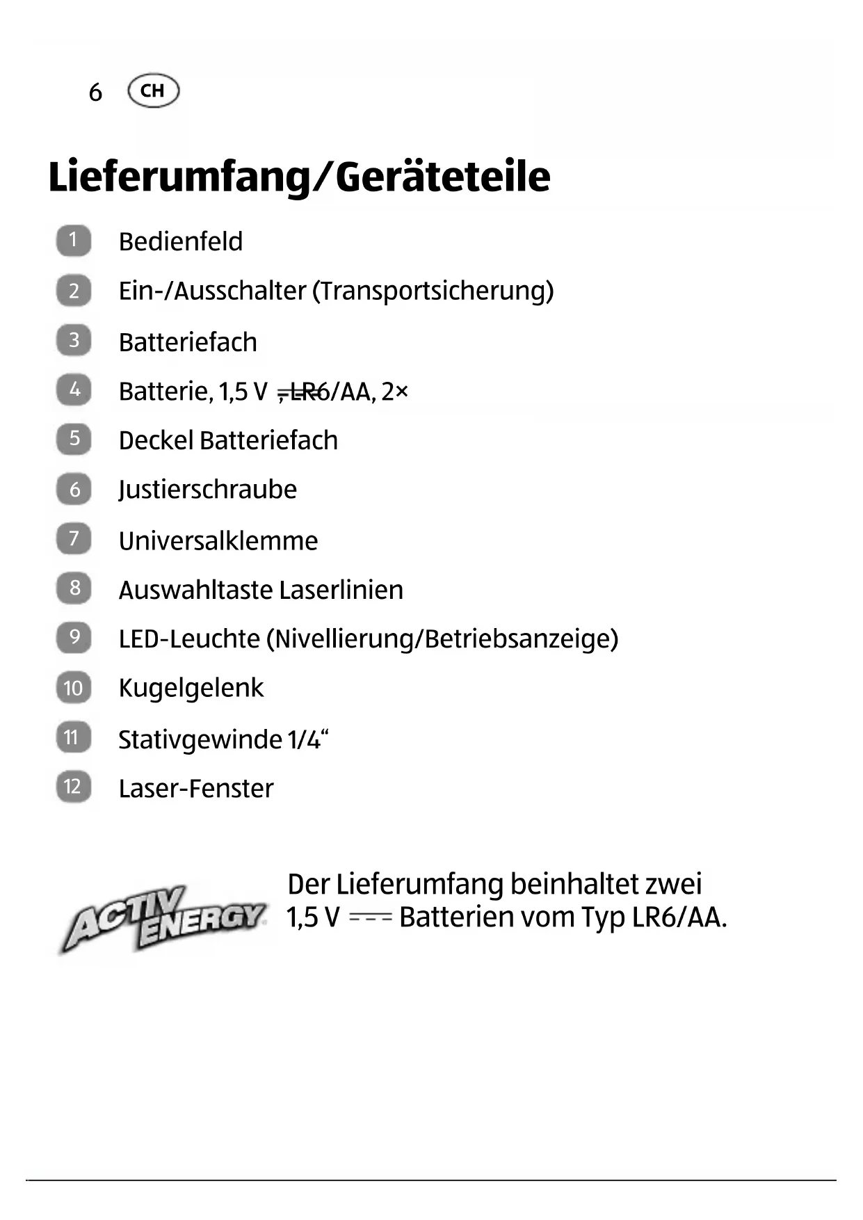 Laser-Fenster Der Lieferumfang beinhaltet zwei 1,5 V Batterien vom Typ LR6/AA.Allgemeines