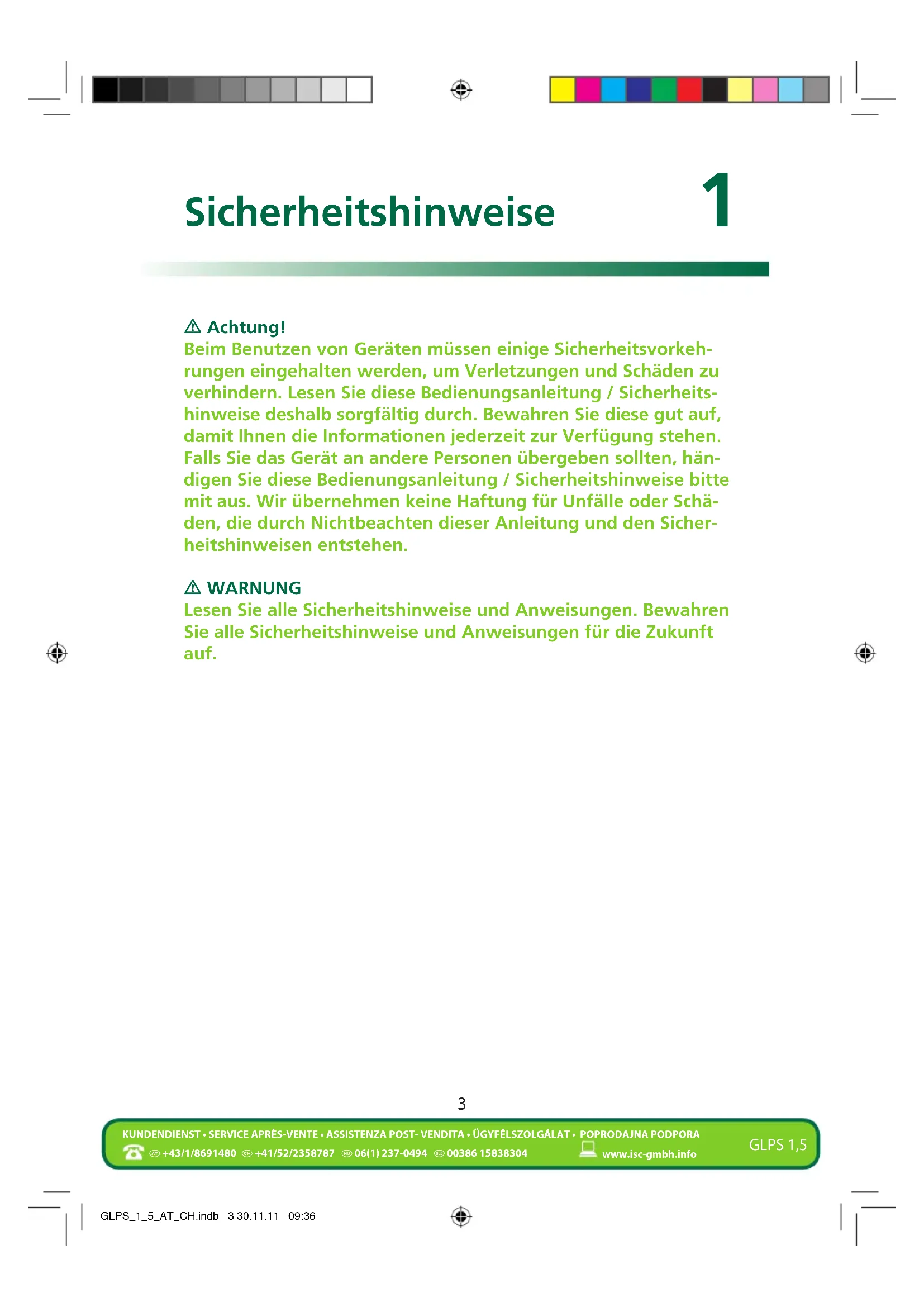 - Defekte Teile bitte sofort austauschen. GLPS_1_5_AT_CH.indb 4 30.11.11 09:365