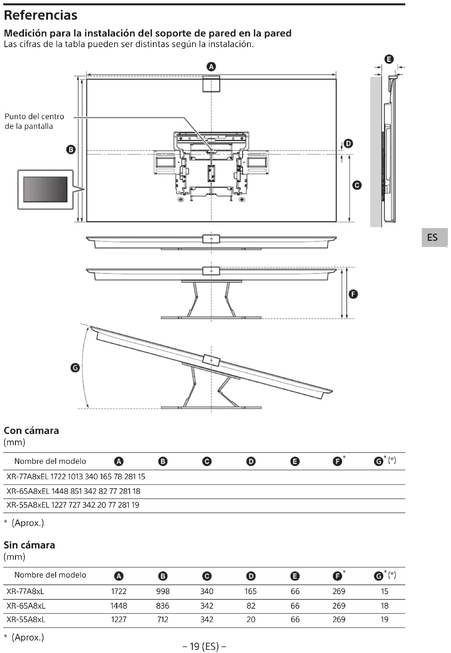- (Aprox.)− 2 (DE) − Installationsinformationen zum Verwenden der Wandhalterung (SU-WL850) von Sony Unterstützte Modelle*: