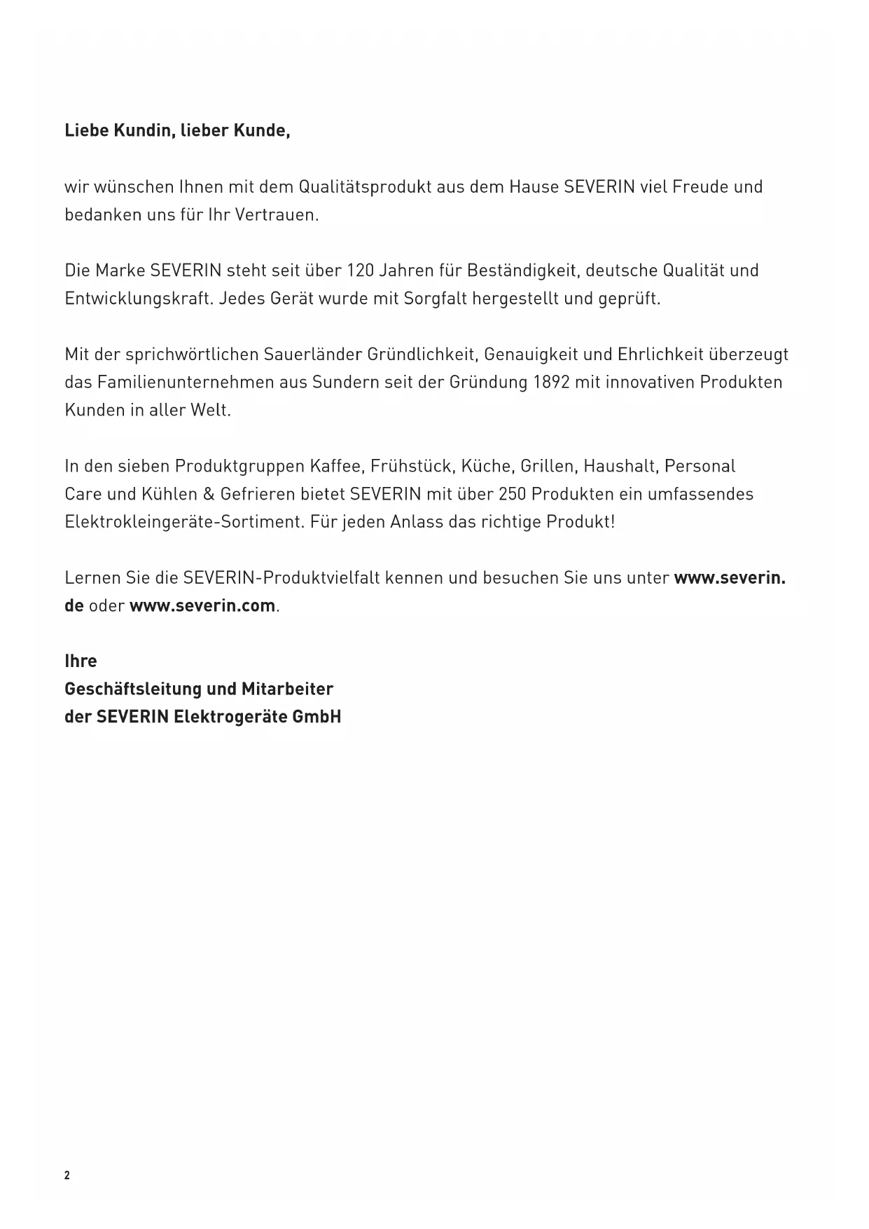 Das Gerät ist nicht für den gewerblichen Einsatz bestimmt, auch nicht für den Gebrauch im Catering und ähnlichem Großhandelseinsatz.