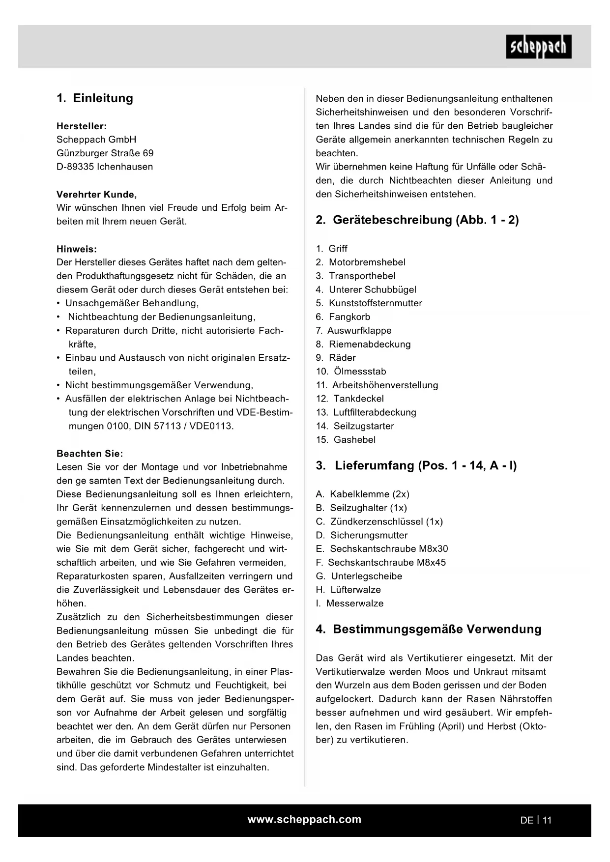 SC50Vario - Vertikutierer SCHEPPACH - Kostenlose Bedienungsanleitung