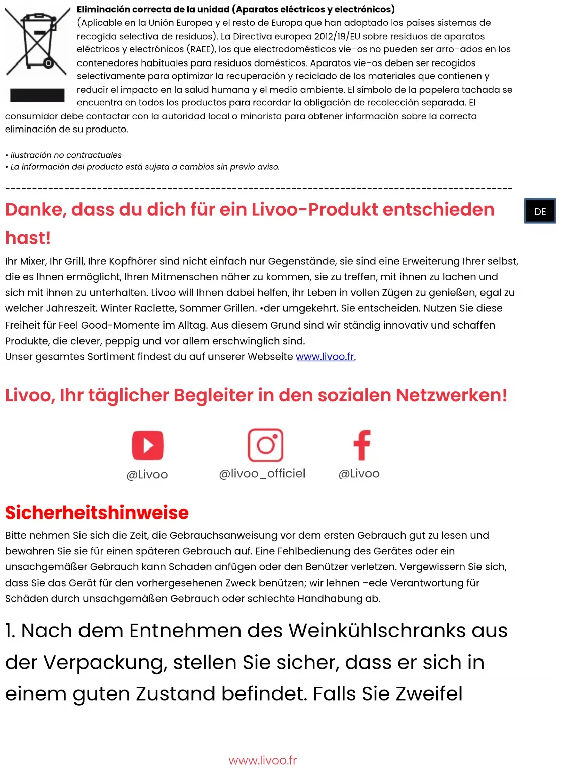 der Verpackung, stellen Sie sicher, dass er sich in einem guten Zustand befindet. Falls Sie Zweifel @livoo_officiel
