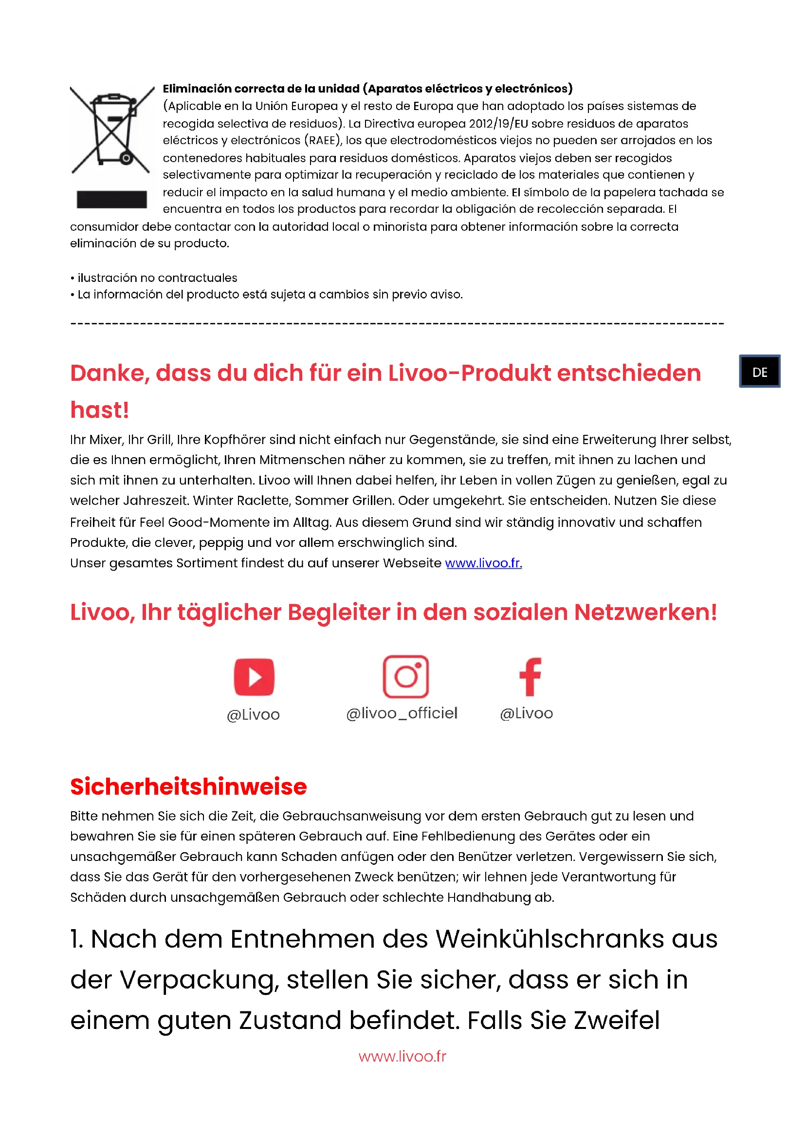 der Verpackung, stellen Sie sicher, dass er sich in einem guten Zustand befindet. Falls Sie Zweifel @livoo_officiel