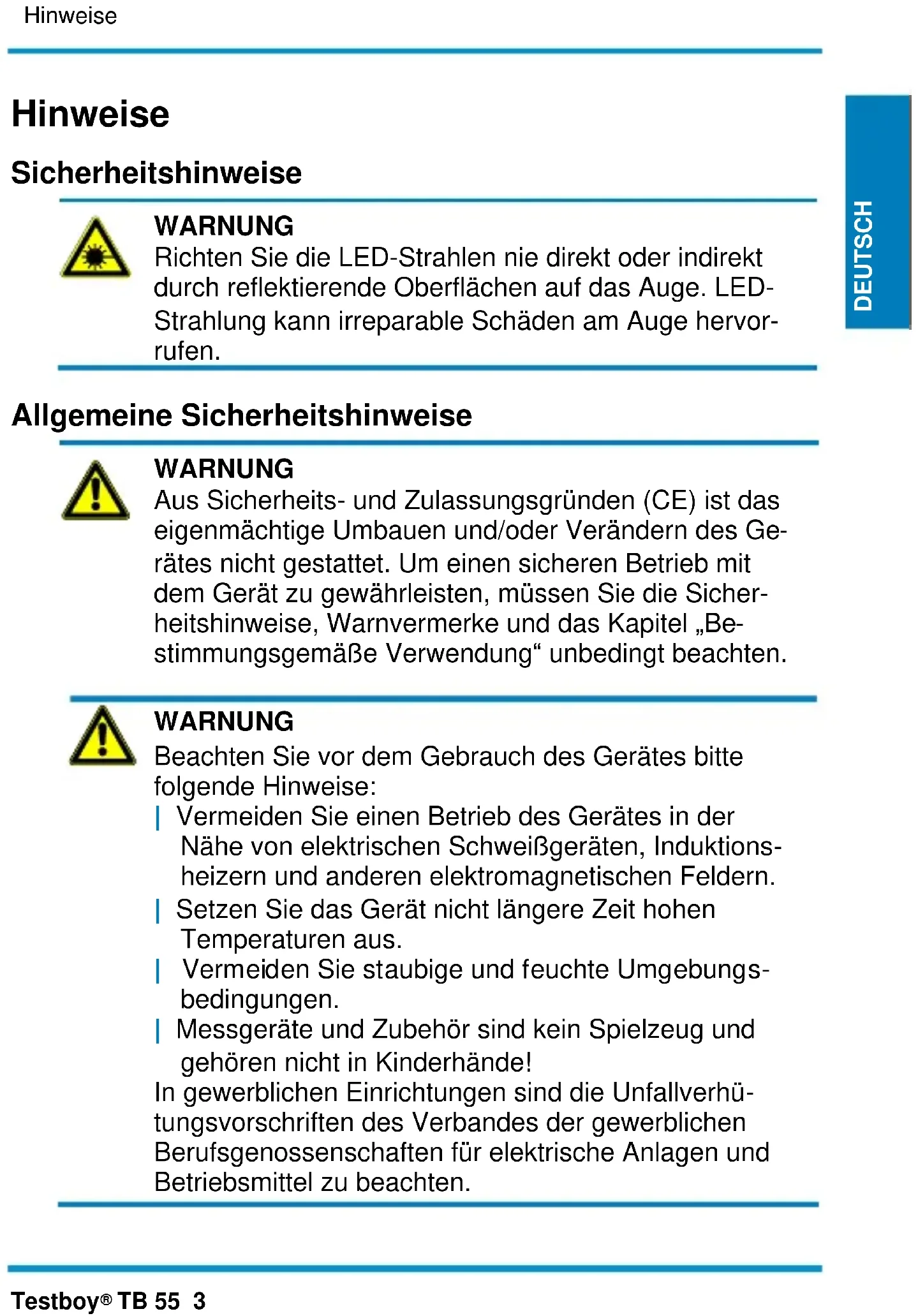 TB 55 3 DEUTSCH DEUTSCH DEUTSCH Hinweise Sicherheitshinweise