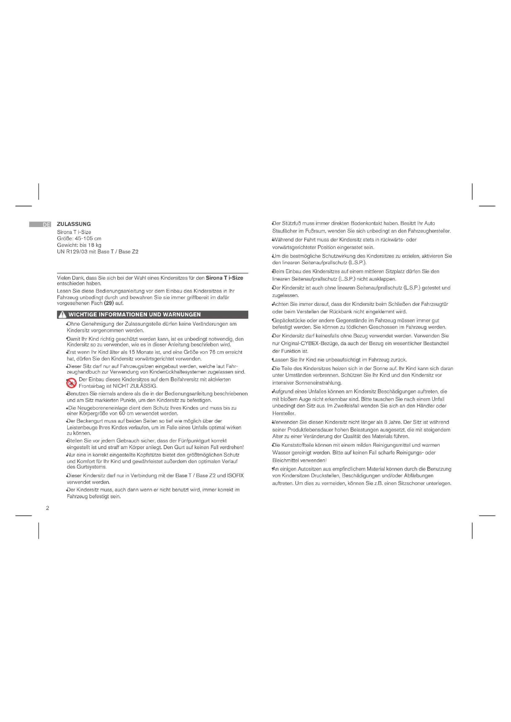 Sirona T i-Size - Kindersitz CYBEX - Kostenlose Bedienungsanleitung