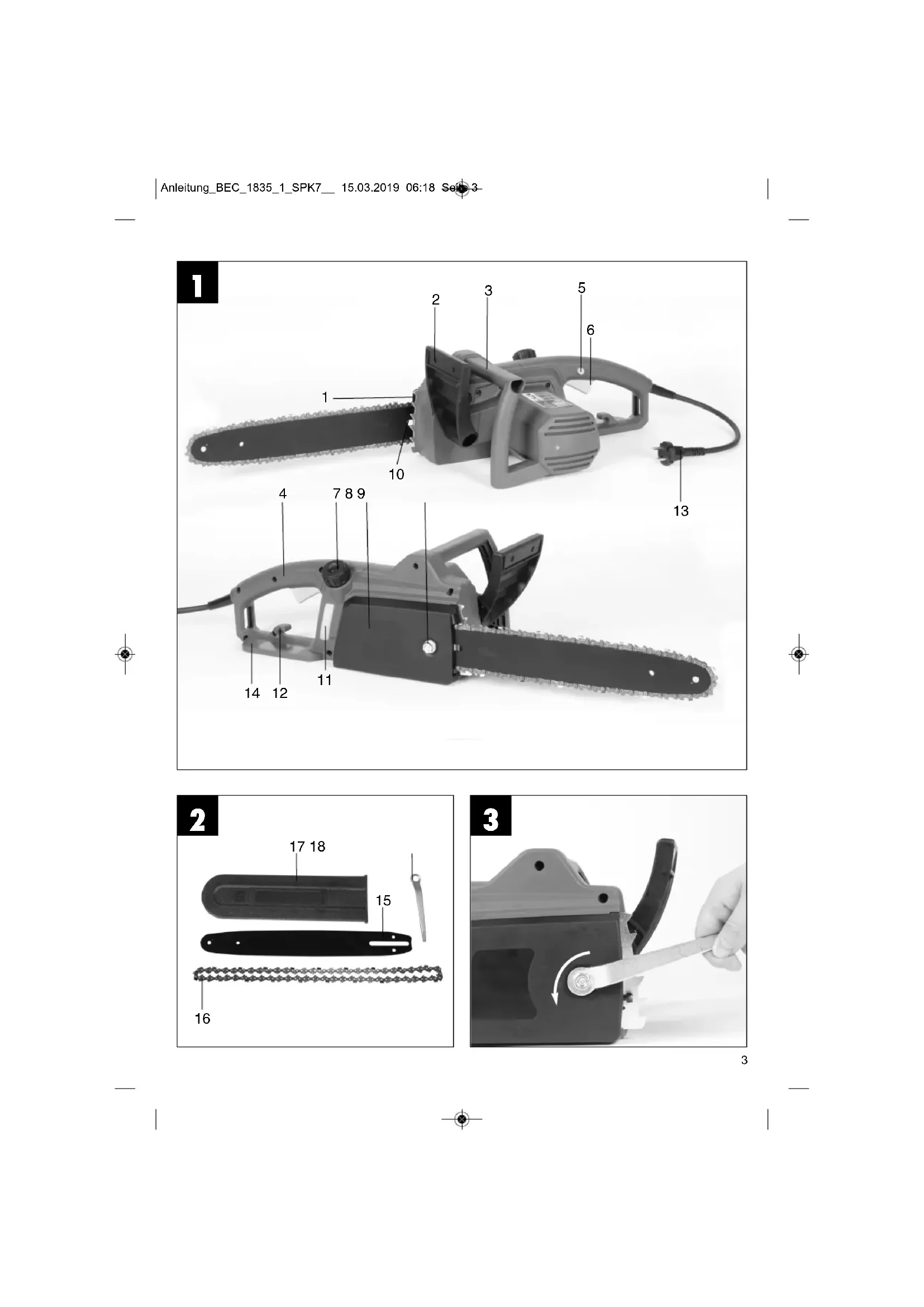 Anleitung_BEC_1835_1_SPK7__ 15.03.2019 06:18 Seite 12Fertigstellung des Schnitts den Stillstand der Säge- kette abwarten, bevor man die Kettensäge dort ent- fernt. Den Motor der Kettensäge immer ausschalten, bevor man von Baum zu Baum wechselt.