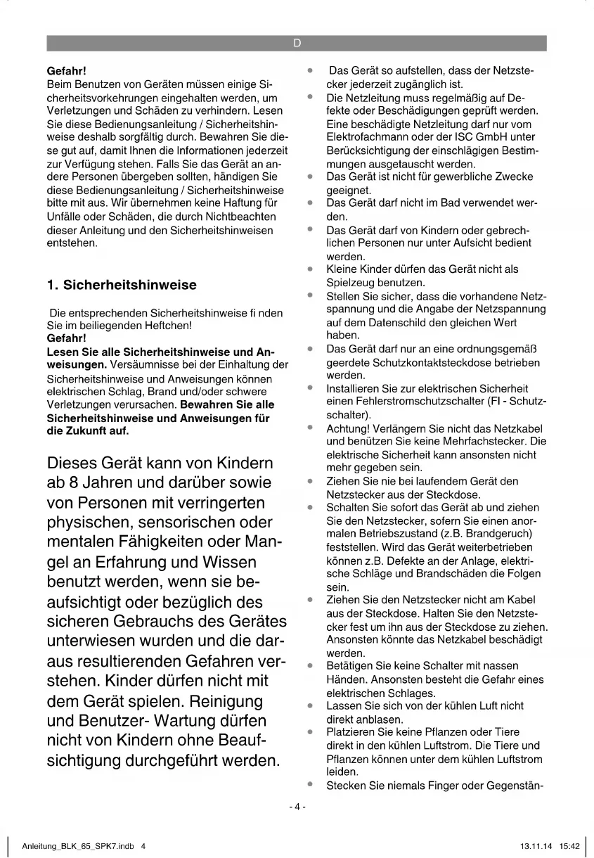 Stecken Sie niemals Finger oder Gegenstän- Anleitung_BLK_65_SPK7.indb 4Anleitung_BLK_65_SPK7.indb 4 13.11.14 15:4213.11.14 15:42D