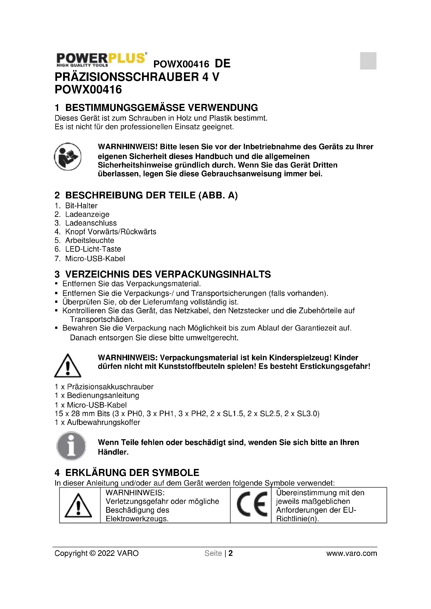 Übereinstimmung mit den jeweils maßgeblichen Anforderungen der EU- Richtlinie(n).POWX00416 DE Copyright © 2022 VARO Seite | 3 www.varo.com