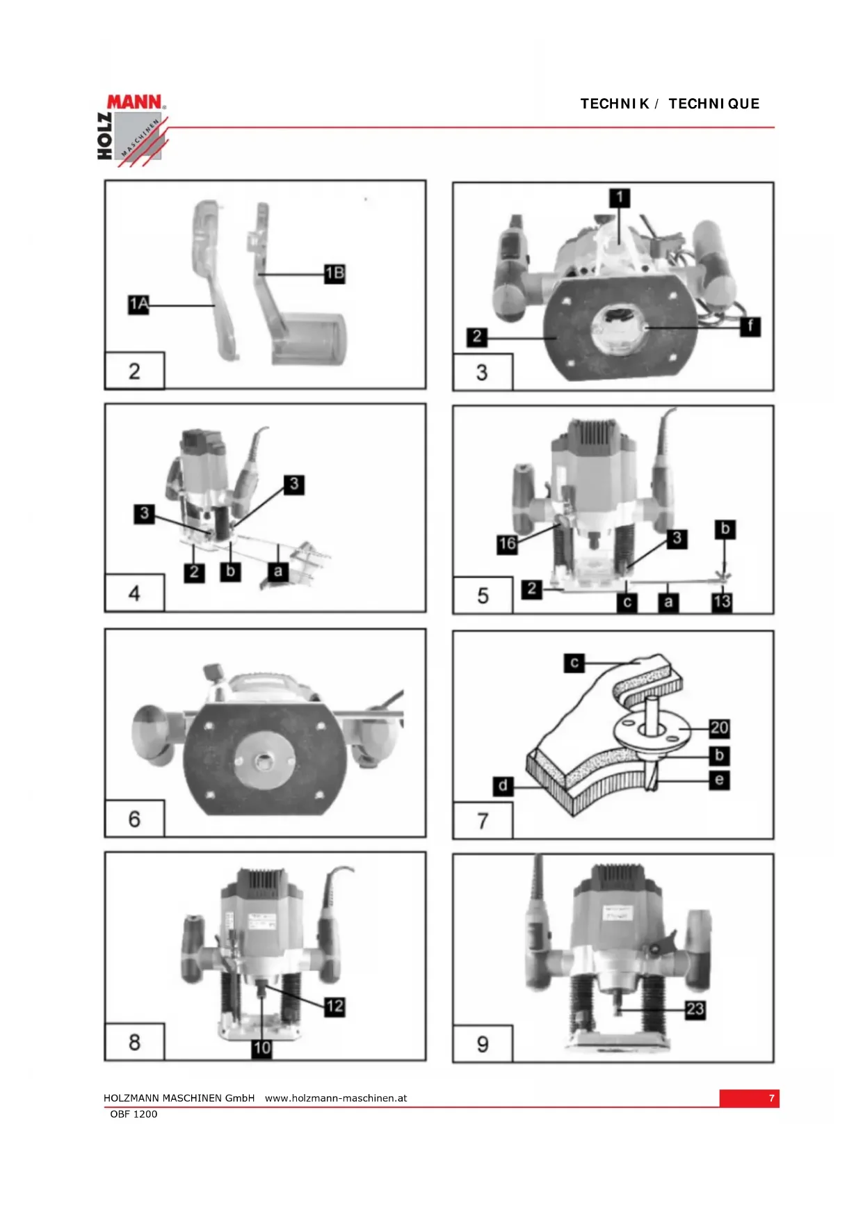 Warnung vor rotierenden Teilen! FR Danger dû aux parties rotatives!TECHNIK / TECHNIQUE HOLZMANN MASCHINEN GmbH www.holzmann-maschinen.at 6 OBF 1200 3 TECHNIK / TECHNIQUE