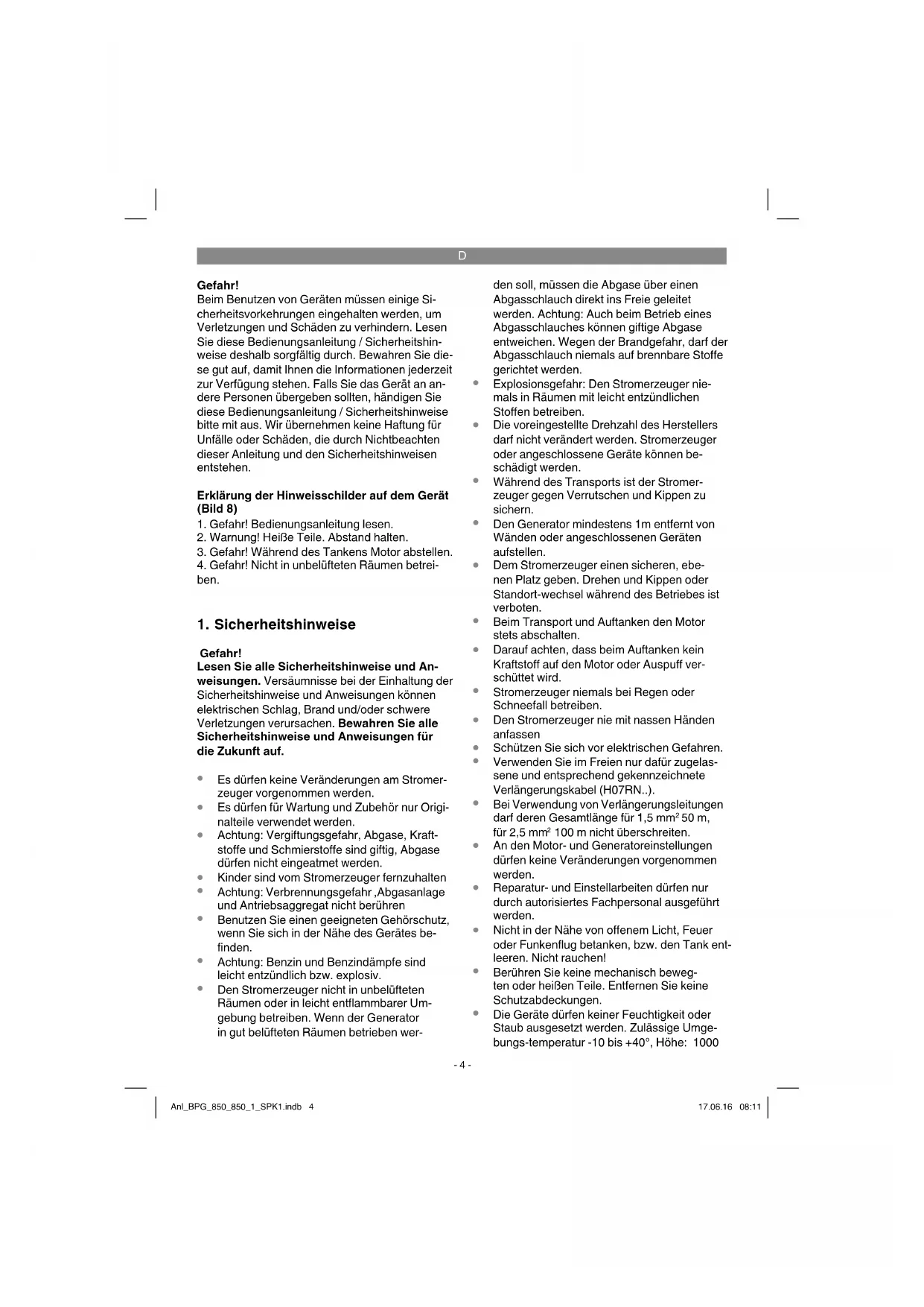 BPG 850/1 - Generator Bavaria - Kostenlose Bedienungsanleitung