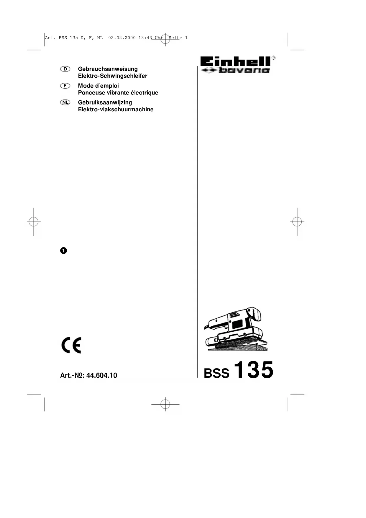 Laden Sie die Anleitung für Ihr Schleifmaschine kostenlos im PDF-Format! Finden Sie Ihr Handbuch Bavaria BSS 135 - EINHELL und nehmen Sie Ihr elektronisches Gerät wieder in die Hand. Auf dieser Seite sind alle Dokumente veröffentlicht, die für die Verwendung Ihres Geräts notwendig sind. Bavaria BSS 135 von der Marke EINHELL.