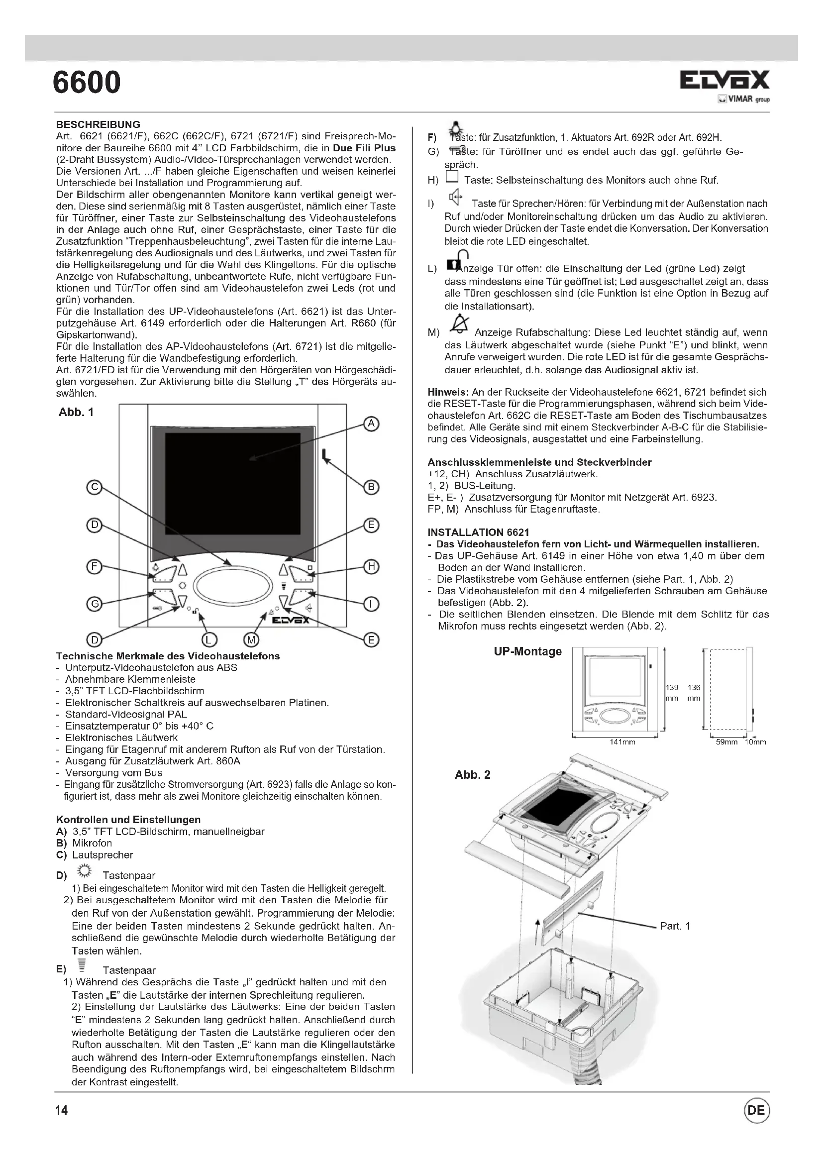 Finden Sie kostenlos die Bedienungsanleitung des Geräts ELVOX 6621 Vimar als PDF.