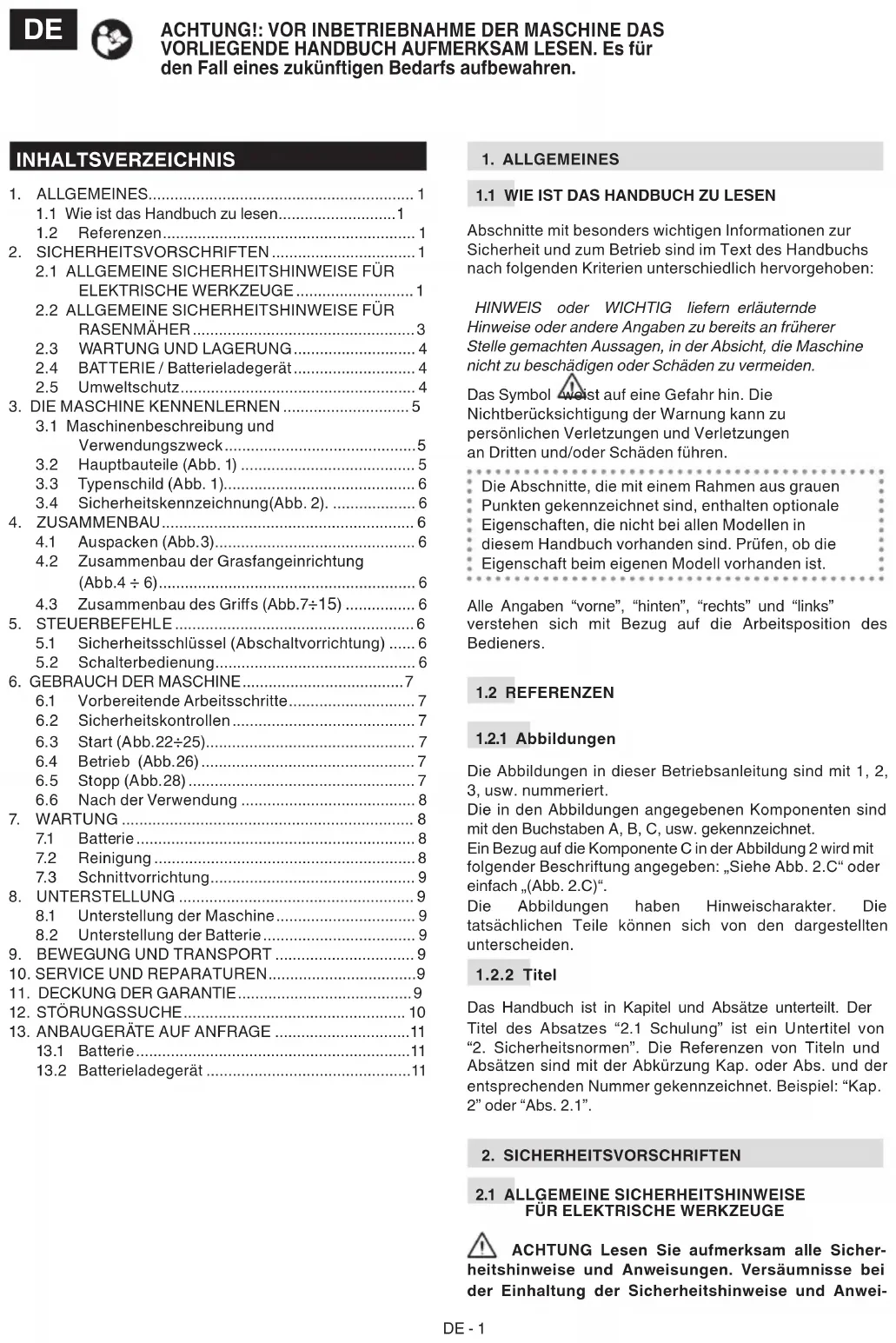 1. ALLGEMEINES ............................................................. 1