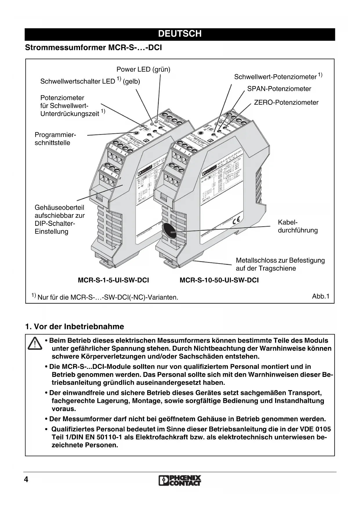 - Die MCR-S-...DCI-Module sollten nur von qualifiziertem Personal montiert und in Betrieb genommen werden. Das Personal sollte sich mit den Warnhinweisen dieser Be- triebsanleitung gründlich auseinandergesetzt haben.