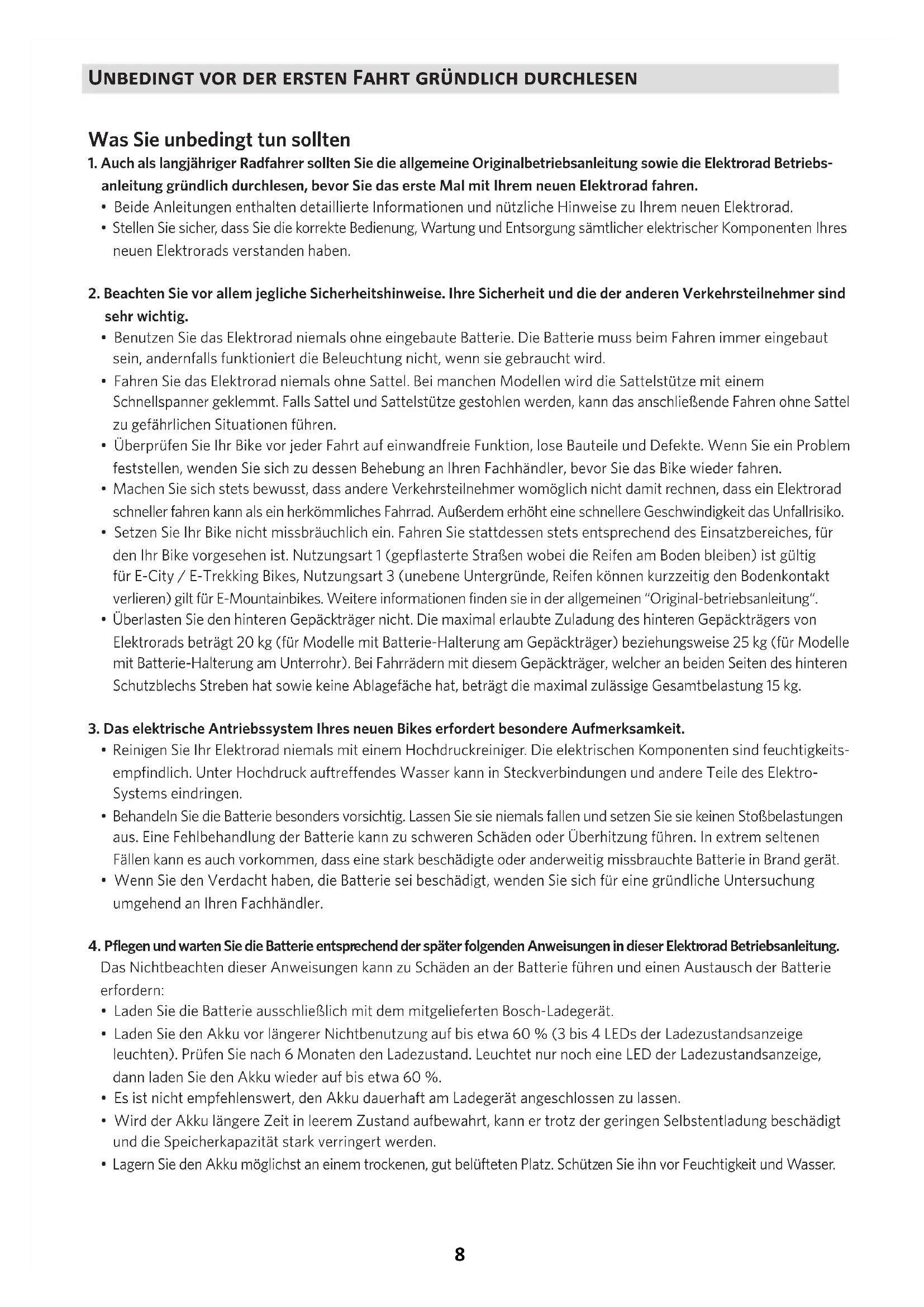 1. Auch als langjähriger Radfahrer sollten Sie die allgemeine Originalbetriebsanleitung sowie die Elektrorad Betriebs-