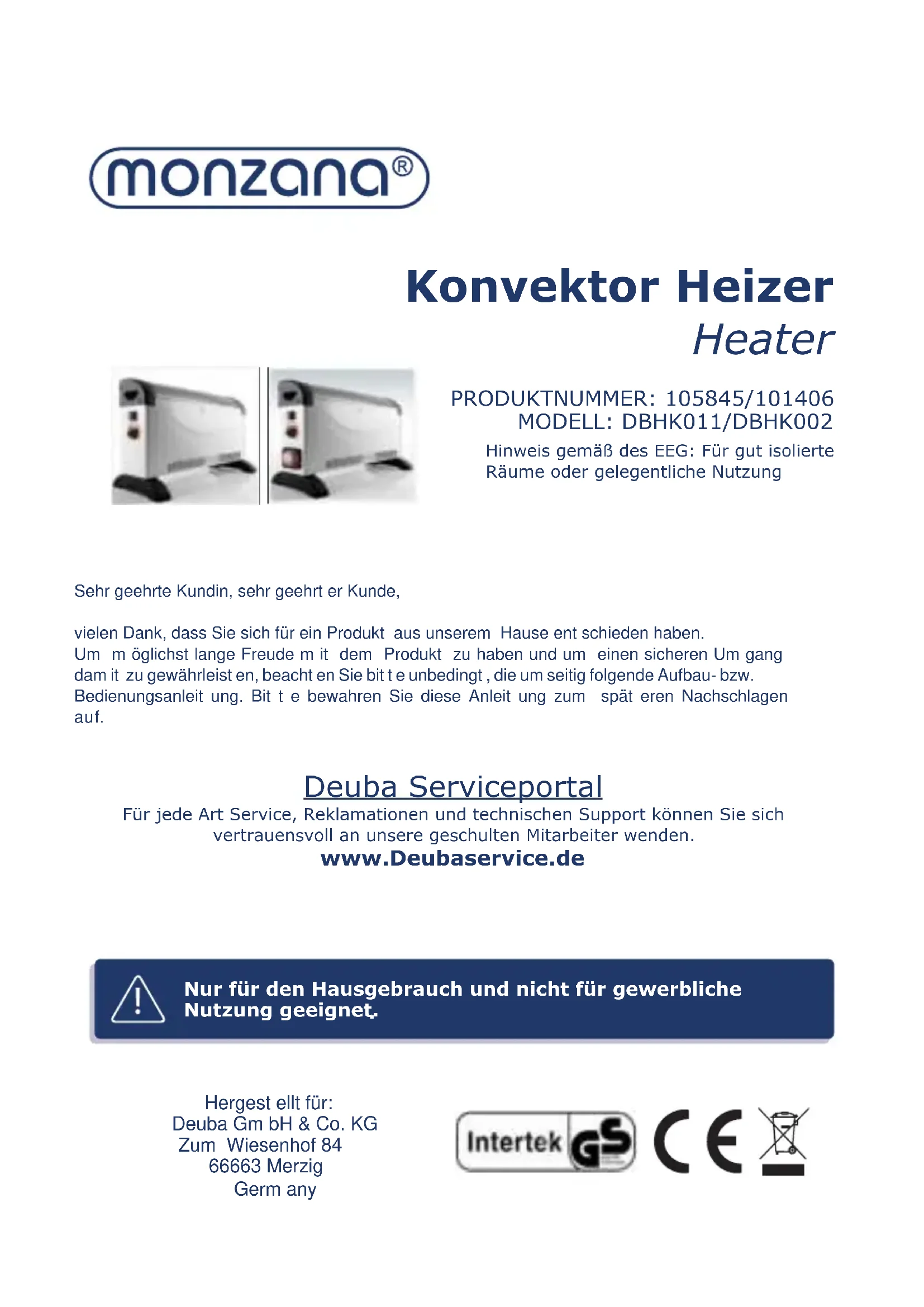 DBHK002 - Heizung Monzana - Kostenlose Bedienungsanleitung
