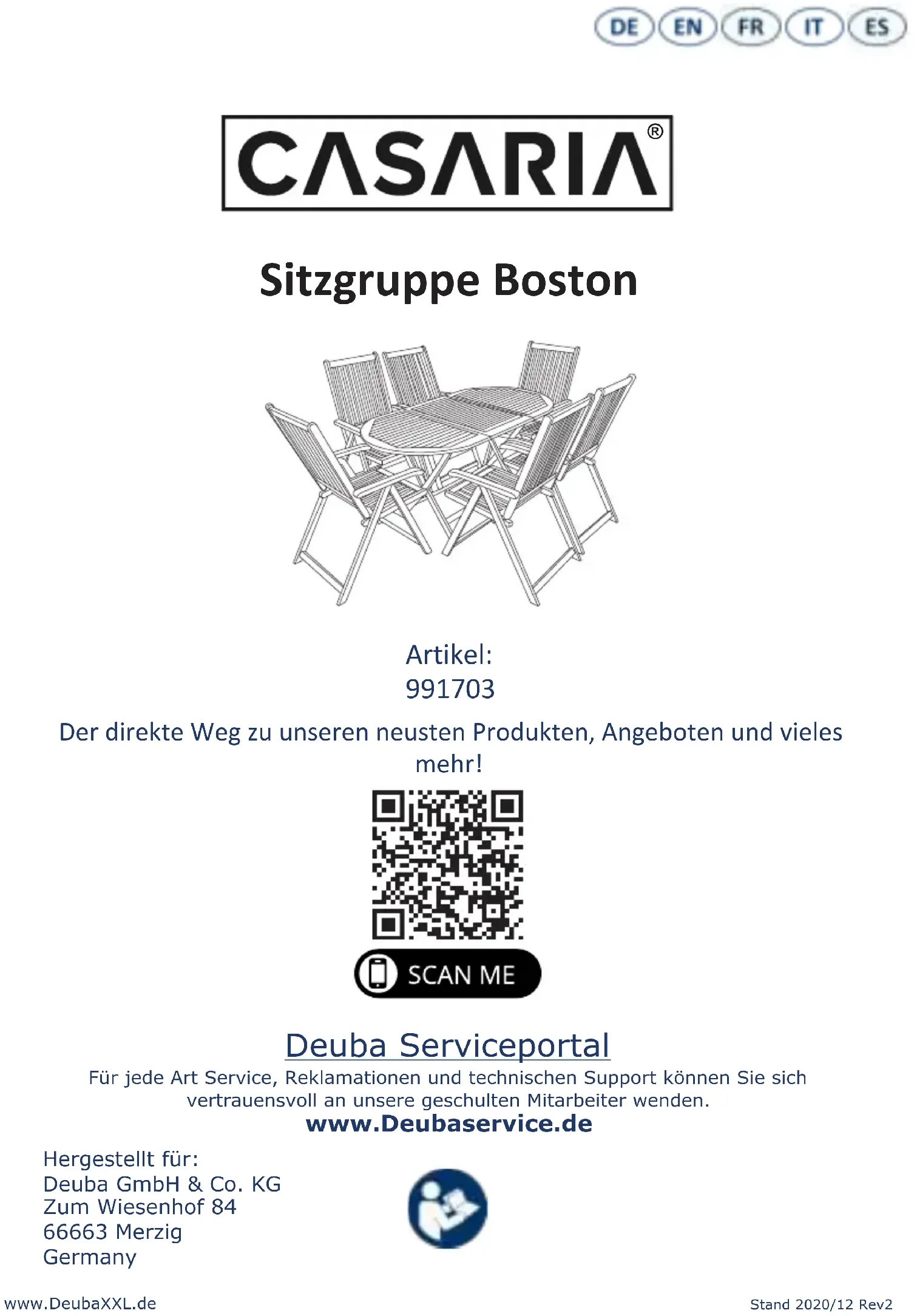 Deuba Serviceportal Für jede Art Service, Reklamationen und technischen Support können Sie sich vertrauensvoll an unsere geschulten Mitarbeiter wenden. www.Deubaservice.de Der direkte Weg zu unseren neusten Produkten, Angeboten und vieles mehr! Sitzgruppe Boston