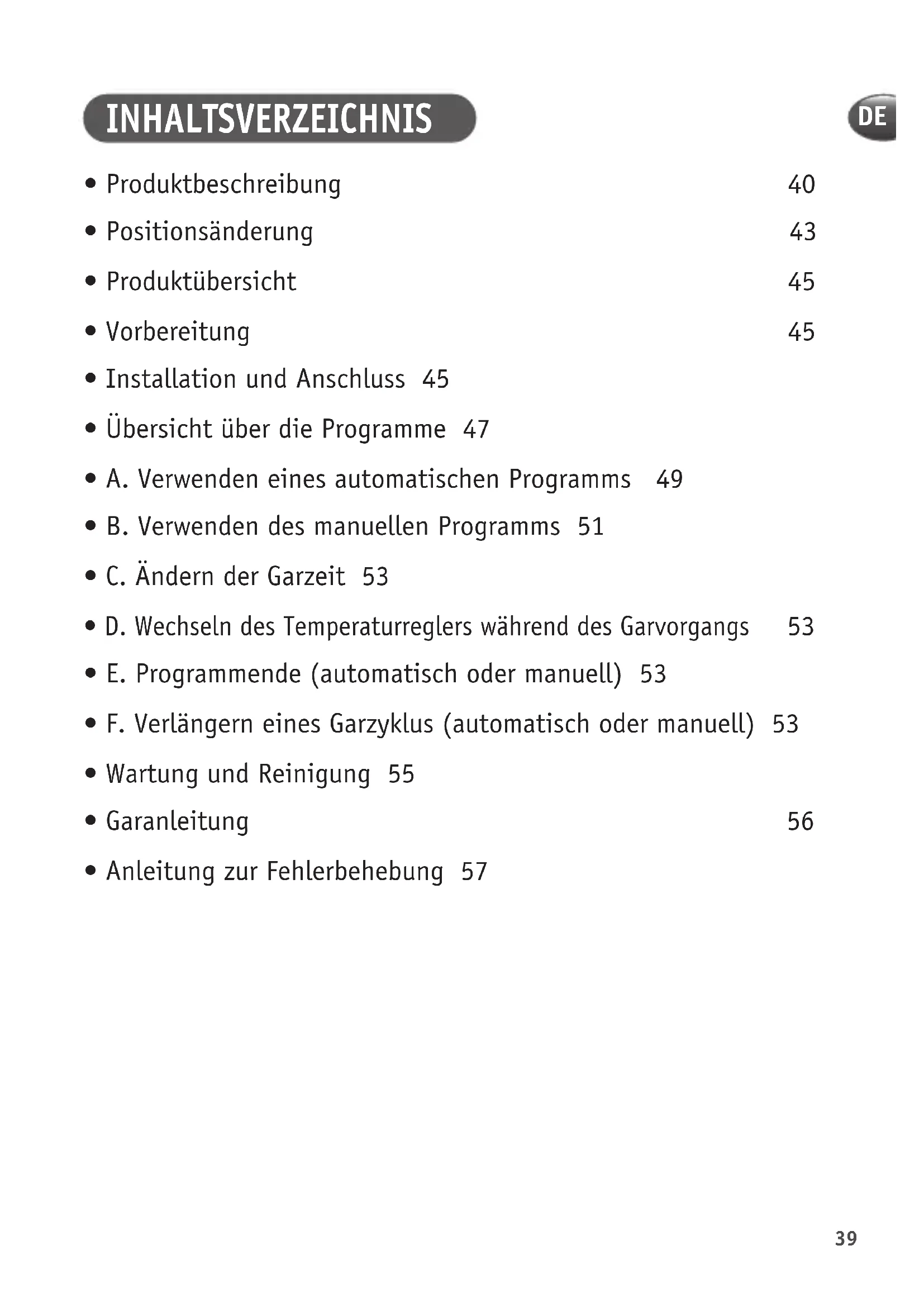- C. Ändern der Garzeit 53