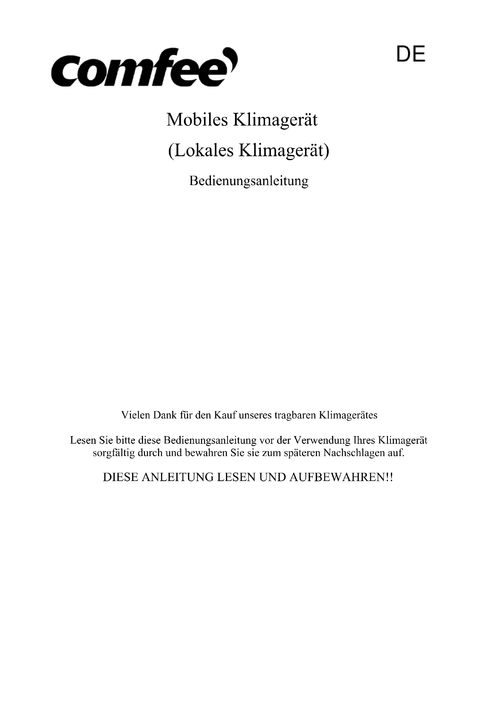 Mobile 5000 - Klimaanlage COMFEE - Kostenlose Bedienungsanleitung