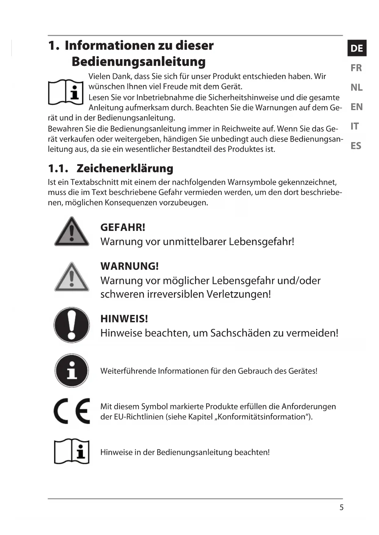1. Informationen zu dieser Bedienungsanleitung ........................................ 5