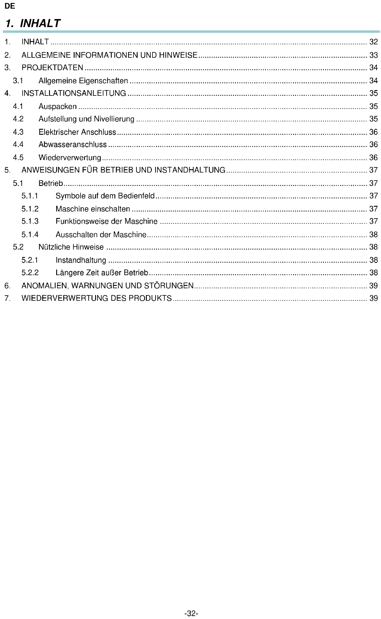 5. ANWEISUNGEN FÜR BETRIEB UND INSTANDHALTUNG