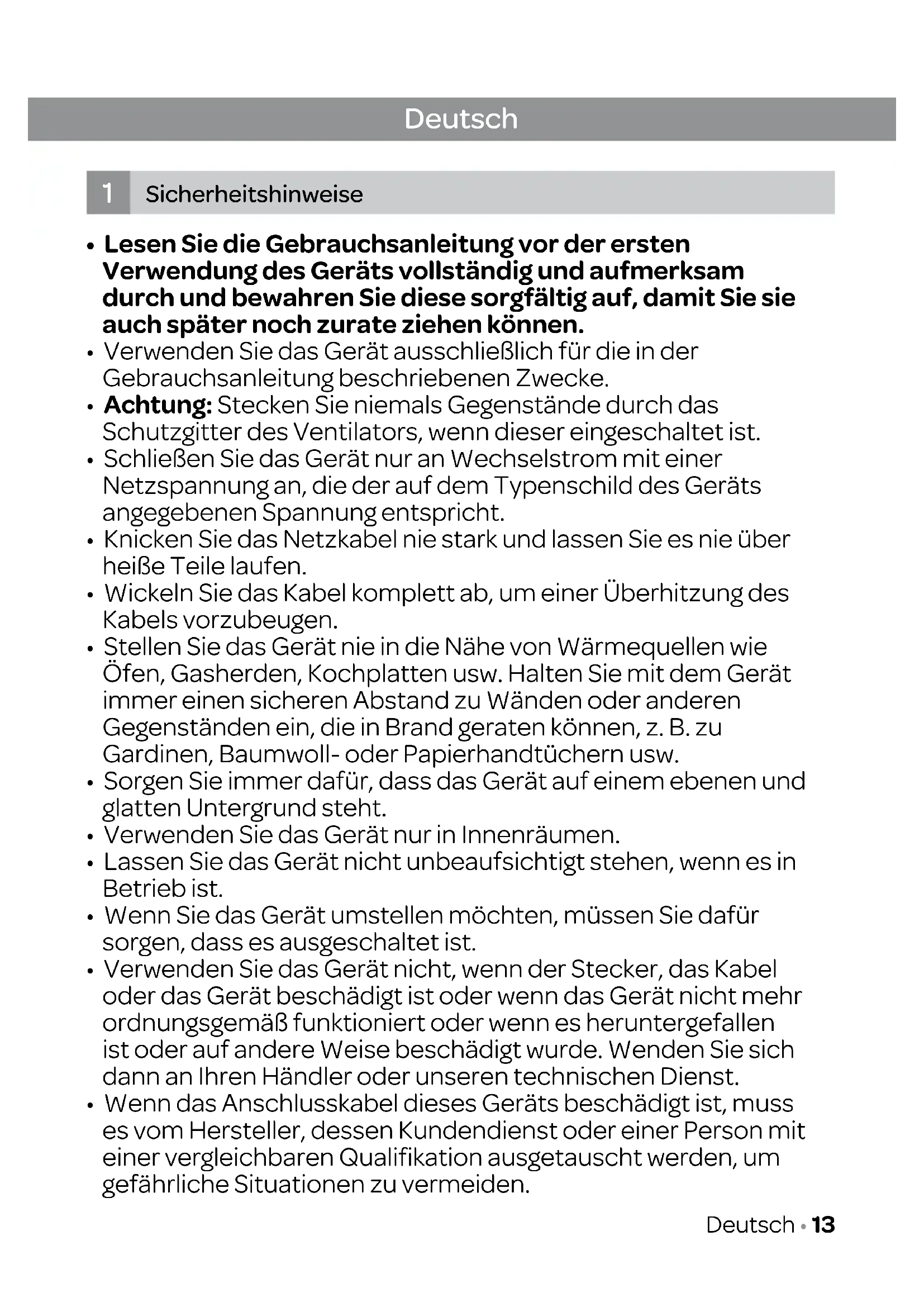 1. Sicherheitshinweise Seite 13