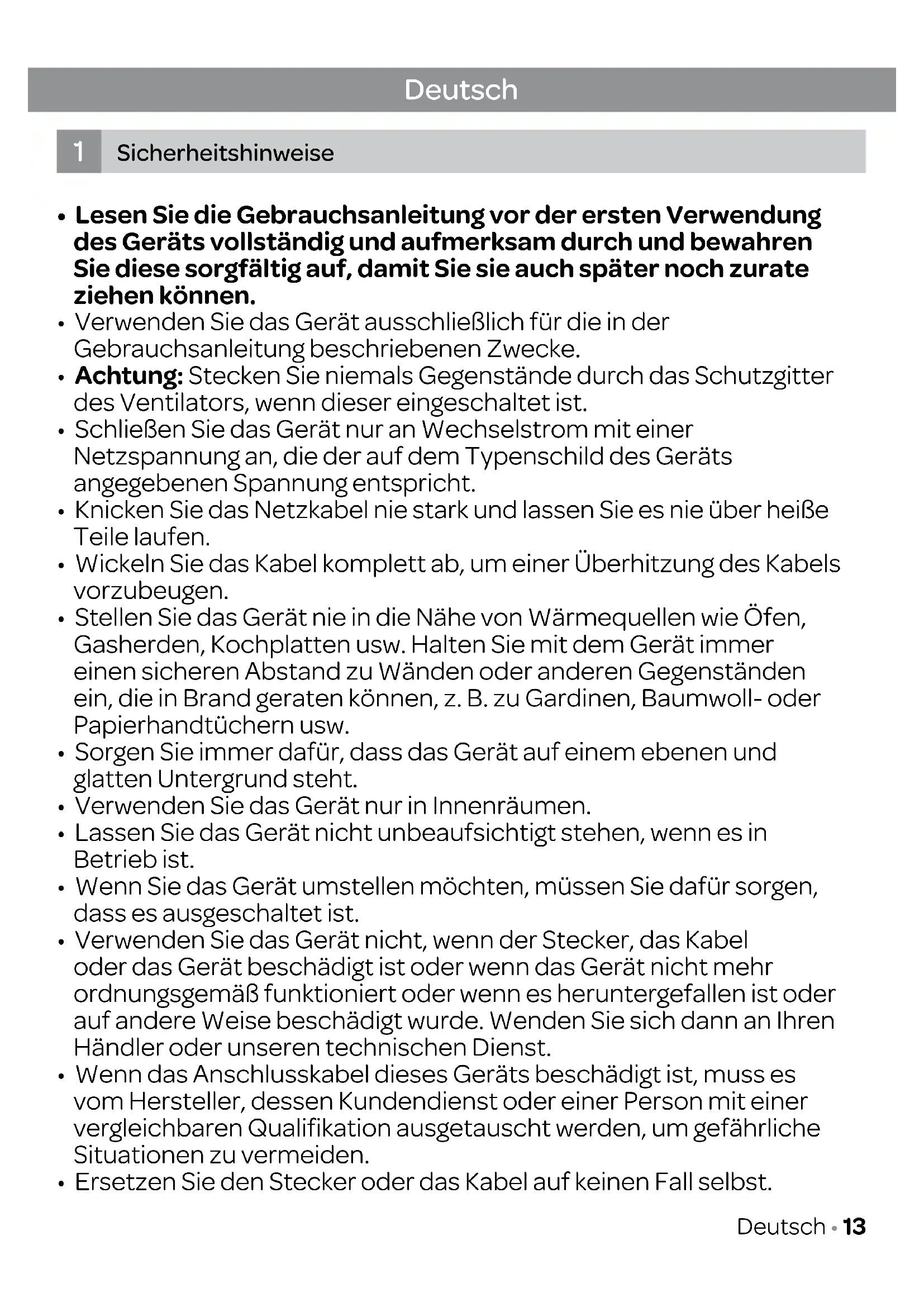 1. Sicherheitshinweise Seite 13