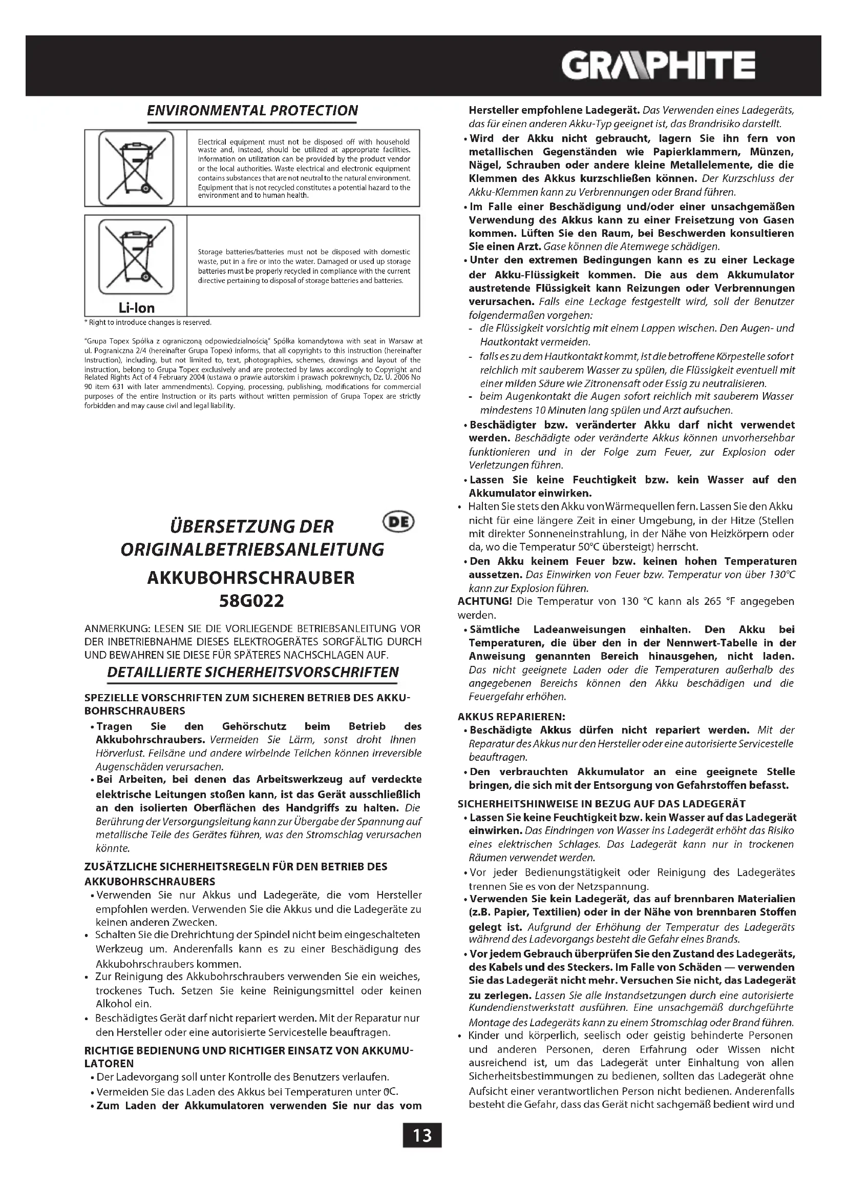 58G022 - Bohrmaschine Graphite - Kostenlose Bedienungsanleitung