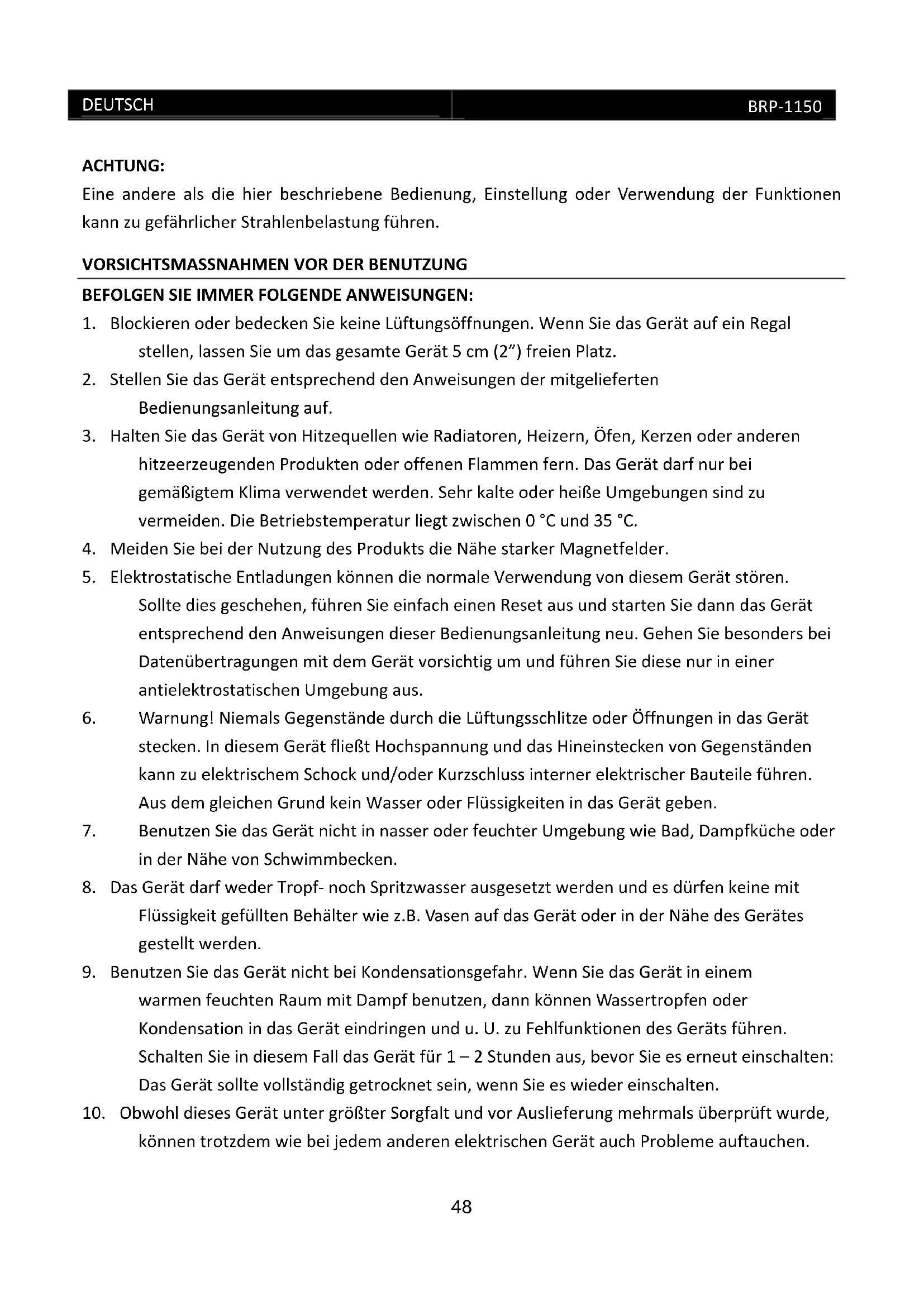 10. ObwohldiesesGerätuntergrößterSorgfaltundvorAuslieferungmehrmalsüberprüftwurde,
