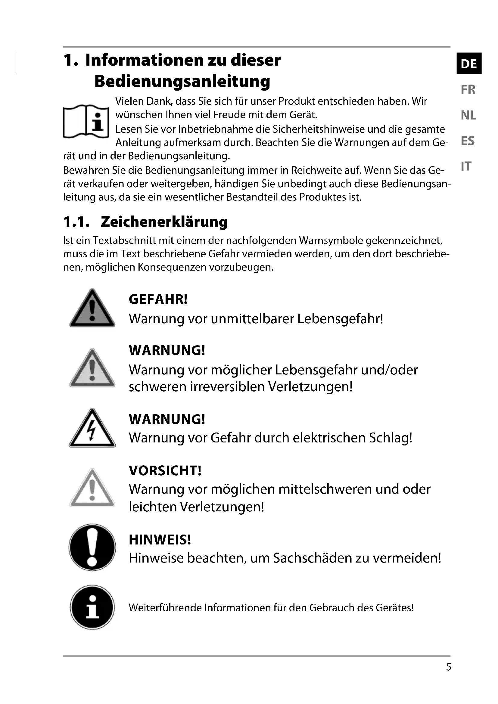 1. Informationen zu dieser Bedienungsanleitung ........................................ 5