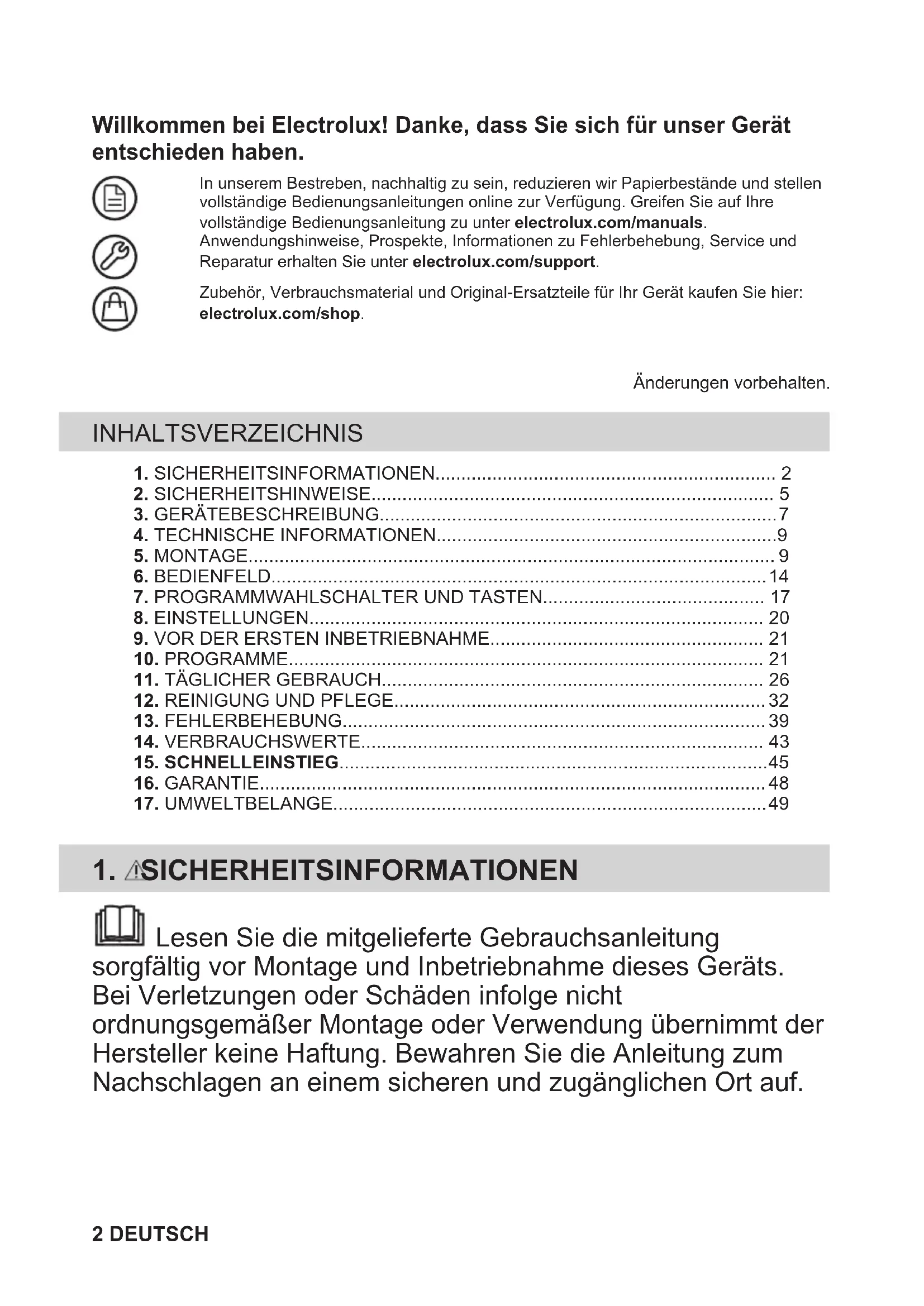 - Erhalten Sie Informationen zur Nutzung, Fehlerbehebung, Wartung und Reparatur (auch verfügbar un ter electrolux.com/support).