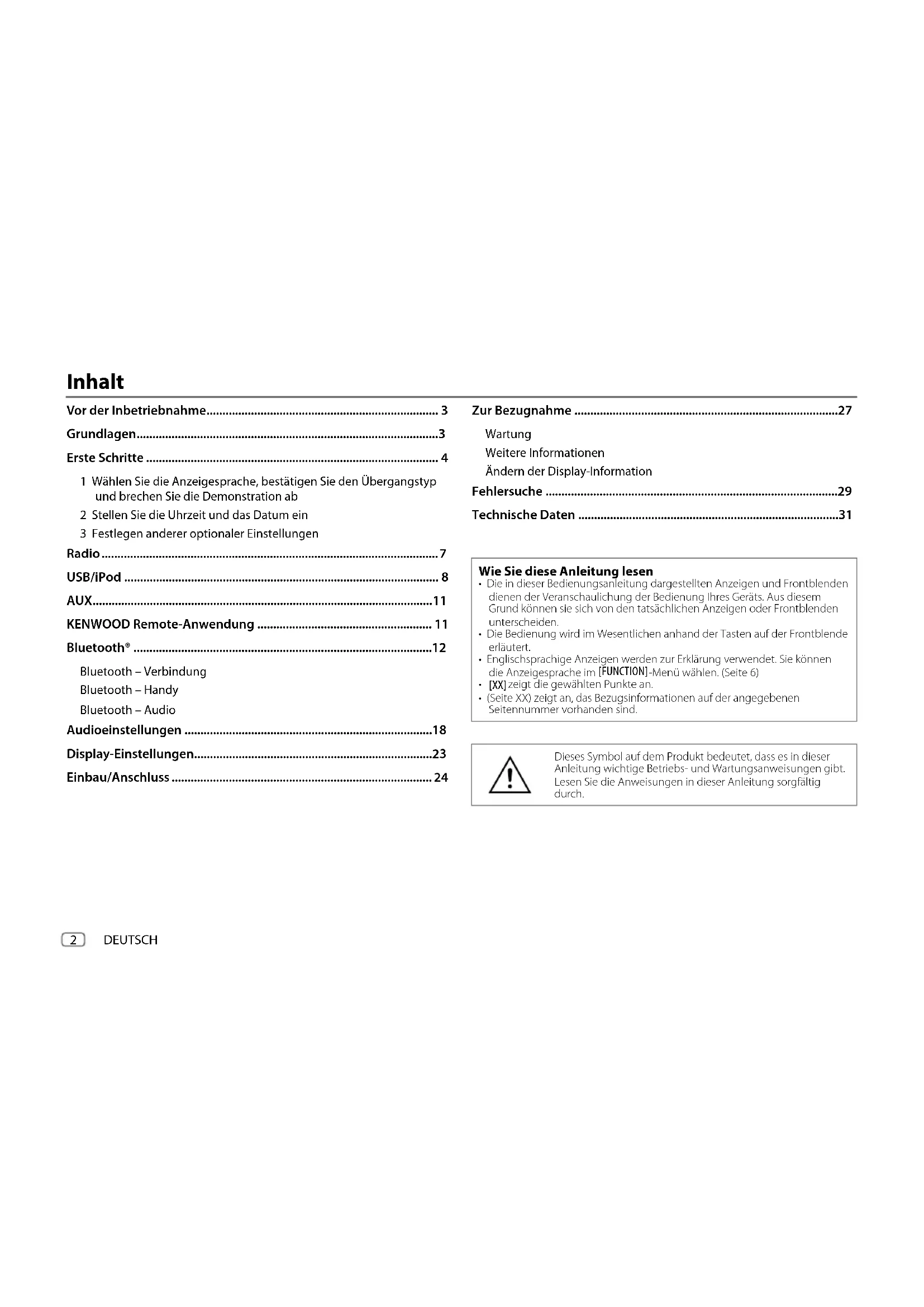 - (SeiteXX) zeigt an, das Bezugsinformationen auf der angegebenen Seitennummer vorhanden sind. Dieses Symbol auf dem Produkt bedeutet, dass es in dieser Anleitung wichtige Betriebs- und Wartungsanweisungen gibt. Lesen Sie die Anweisungen in dieser Anleitung sorgfältig durch. DPX-M3300BT_E_GE.indd 2DPX-M3300BT_E_GE.indd 2 4/4/2022 9:14:46 AM4/4/2022 9:14:46 AMDEUTSCH