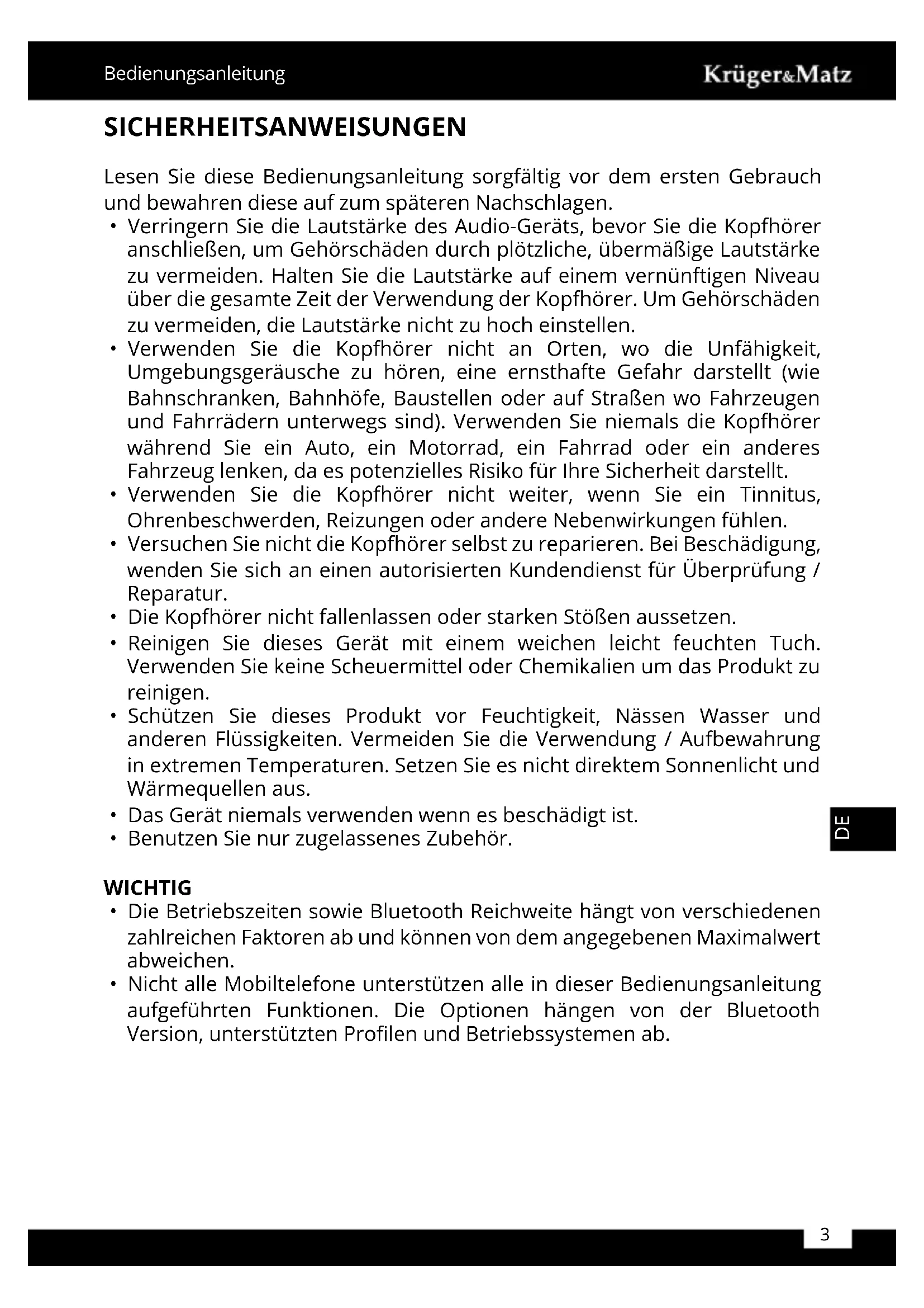 F7A - Kopfhörer Krüger&Matz - Kostenlose Bedienungsanleitung