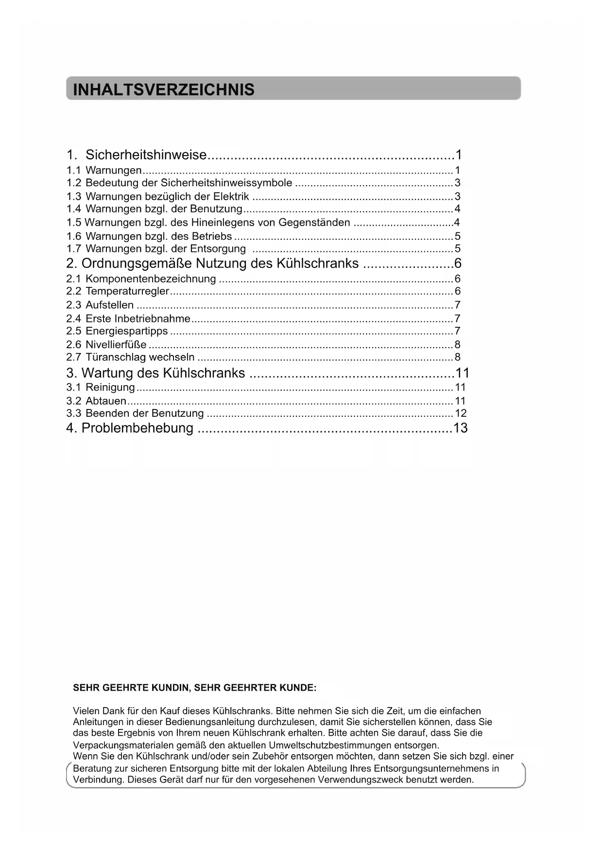 2. Ordnungsgemäße Nutzung des Kühlschranks ........................6