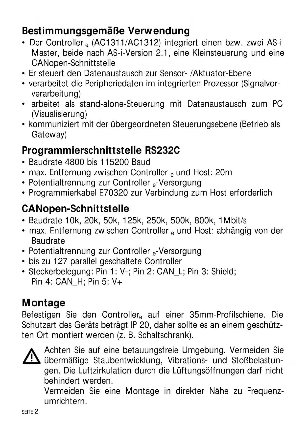 - Programmierkabel E70320 zur Verbindung zum Host erforderlich CANopen-Schnittstelle