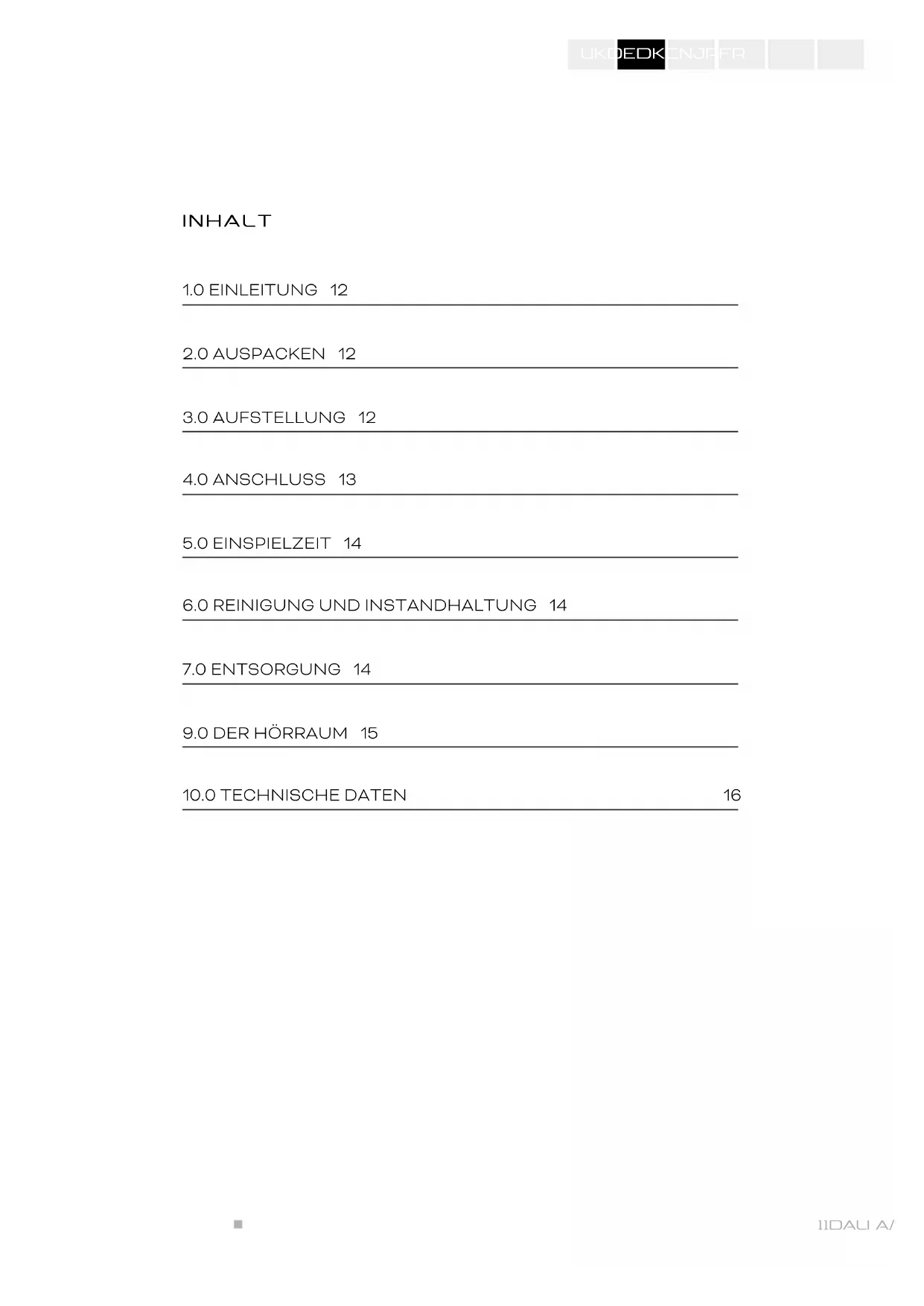 Entsorgen Sie dieses Produkt nicht mit dem Haushaltsmüll. Es gibt ein getrenntes Sammelsystem für gebrauchte elektronische Produkte gemäß den gesetzlichen15DALI A/S www.dali-speakers.com UK DE DK CN JP FR Vorschrien, die eine ordnungsgemäße Behandlung, Rückgewinnung und Wieder- verwertung verlangt. Privathaushalte in den Mitgliedstaaten der EU, der Schweiz, Liechtenstein und in Norwegen können ihre gebrauchten elektronischen Produk- te kostenlos an dafür eingerichteten Sammelstellen abgeben. Sie können es auch bei einem Händler abgeben, wenn Sie ein ähnliches neues Produkt kaufen. Wenn Sie in einem Land wohnen, das nicht oben aufgeführt wur- de, wenden Sie sich bie an Ihre örtlichen Behörden, um sich nach der korrekten Art der Entsorgung zu erkundigen. Auf diese Weise stellen Sie sicher, dass das zu entsorgende Produkt der notwendigen Behandlung, Rückgewinnung und Wieder- verwertung unterzogen wird, wodurch mögliche negative Einflüsse auf die Umwelt und die menschliche Gesundheit verhindert werden.