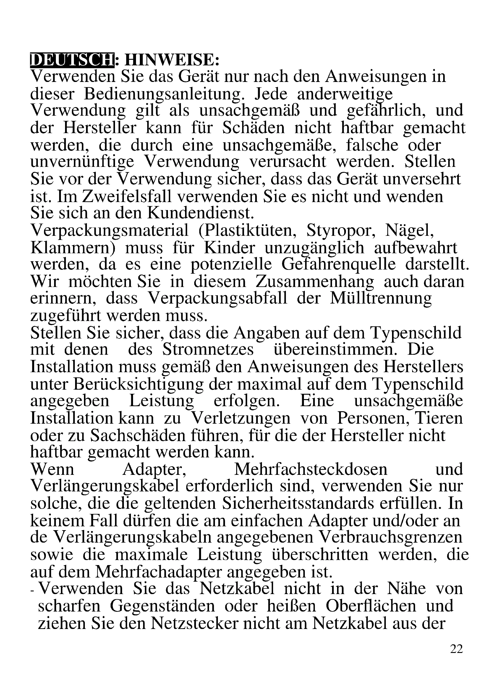 - AC 230V~50Hz - 1380W - Leistung: 20L