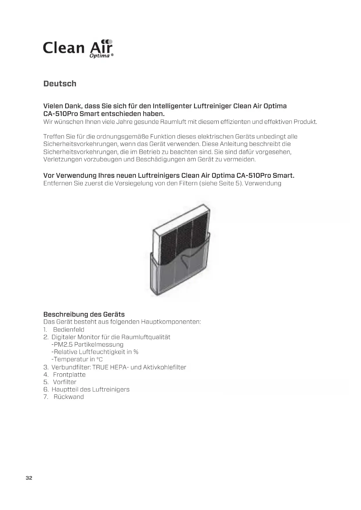 BEDIENUNGSANLEITUNG CA-510Pro Clean Air Optima