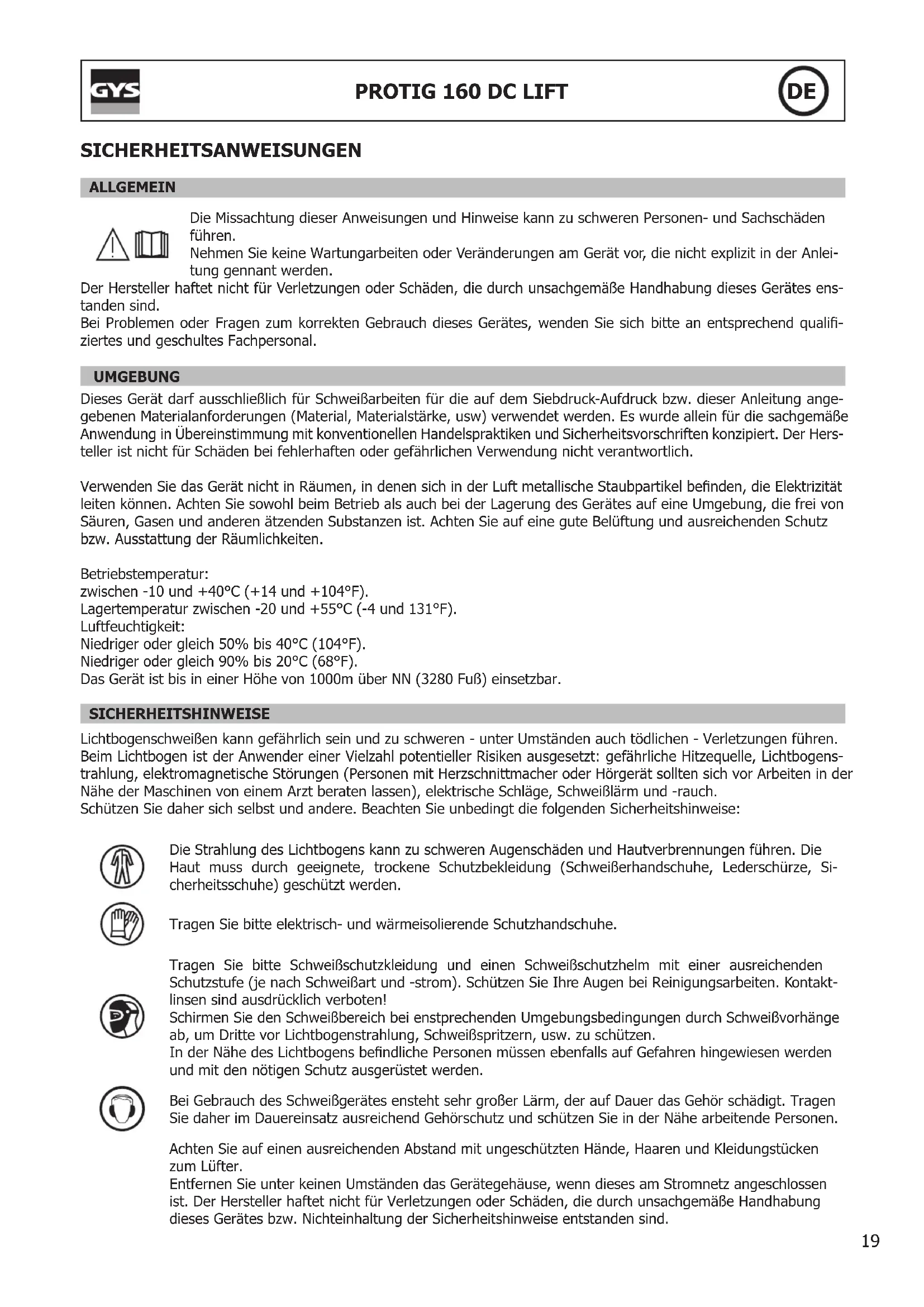 BEDIENUNGSANLEITUNG Protig 160 DC Lift GYS