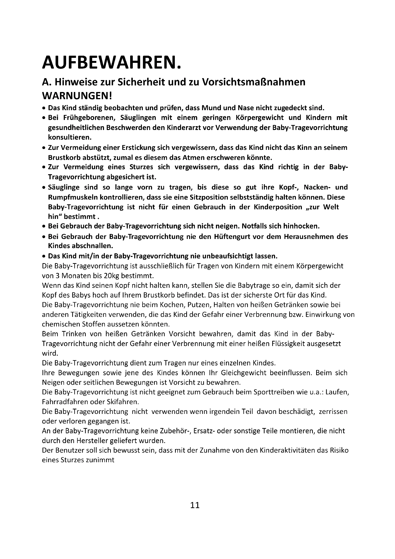 - Bei Gebrauch der Baby-Tragevorrichtung sich nicht neigen. Notfalls sich hinhocken.
