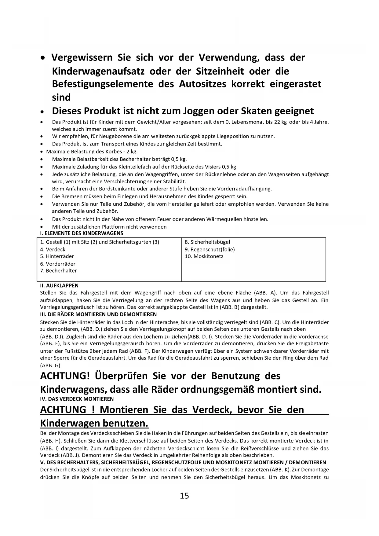I. ELEMENTE DES KINDERWAGENS