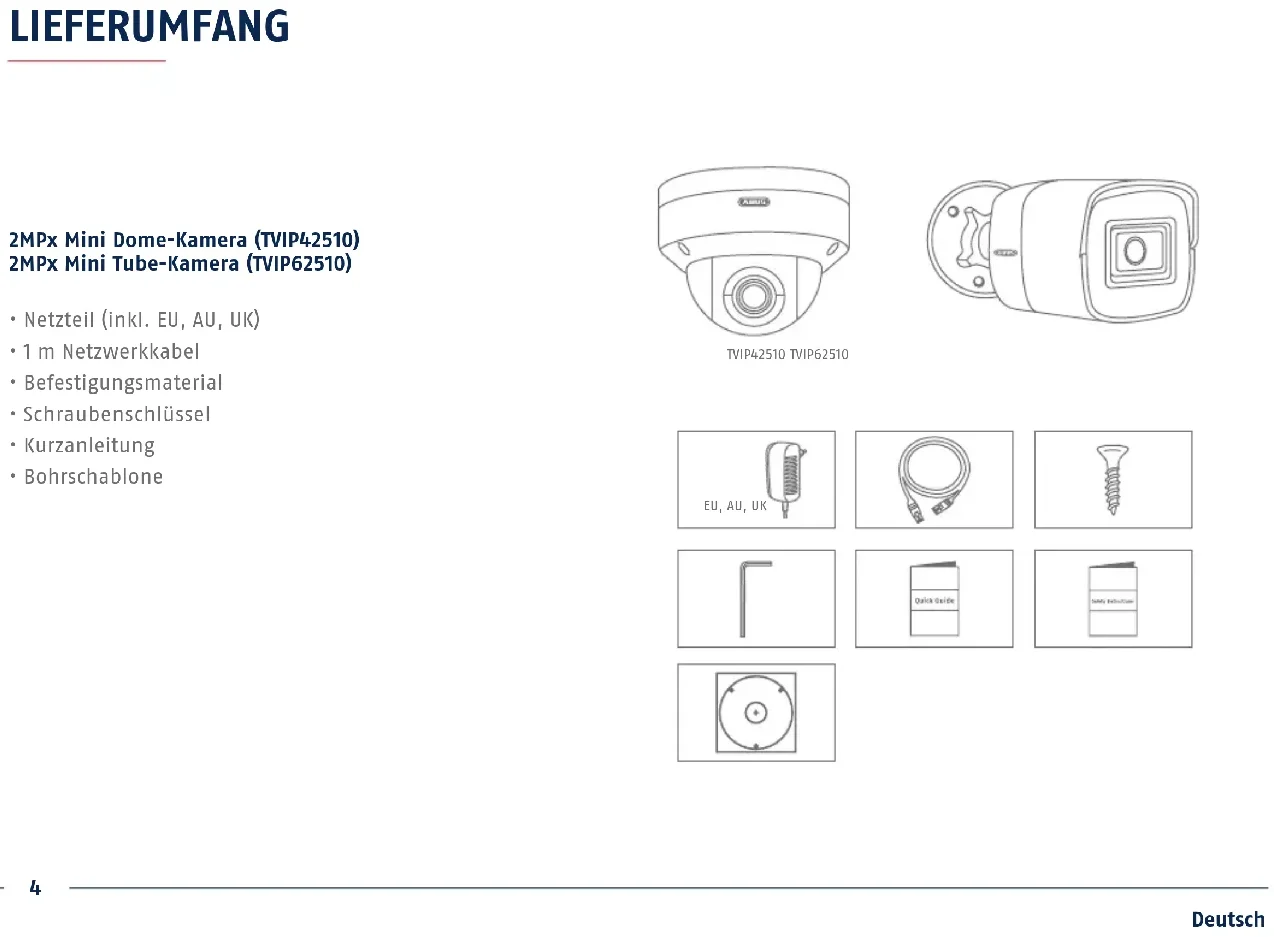 Finden Sie kostenlos die Bedienungsanleitung des Geräts TVIP62510 ABUS als PDF.