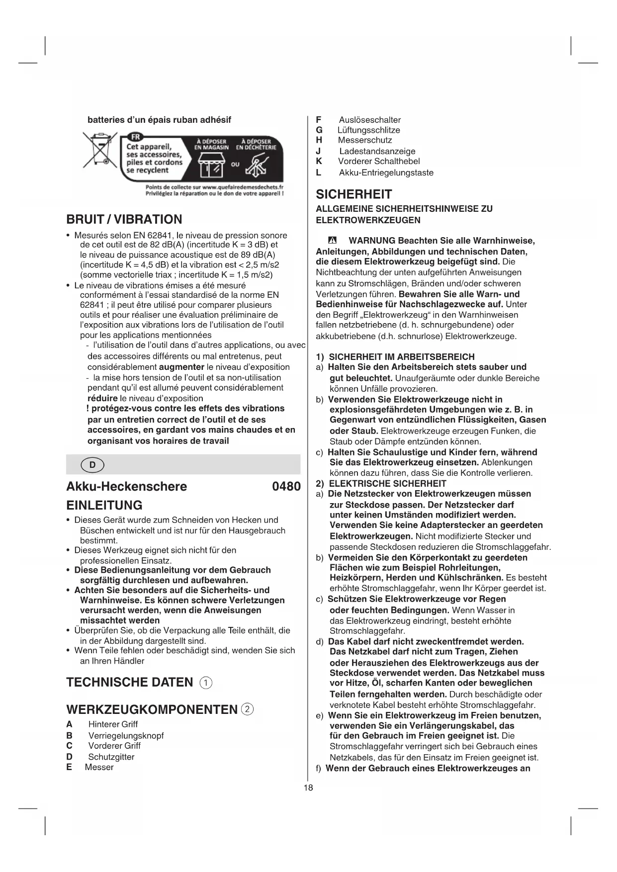 Akku-Heckenschere 0480 EINLEITUNG