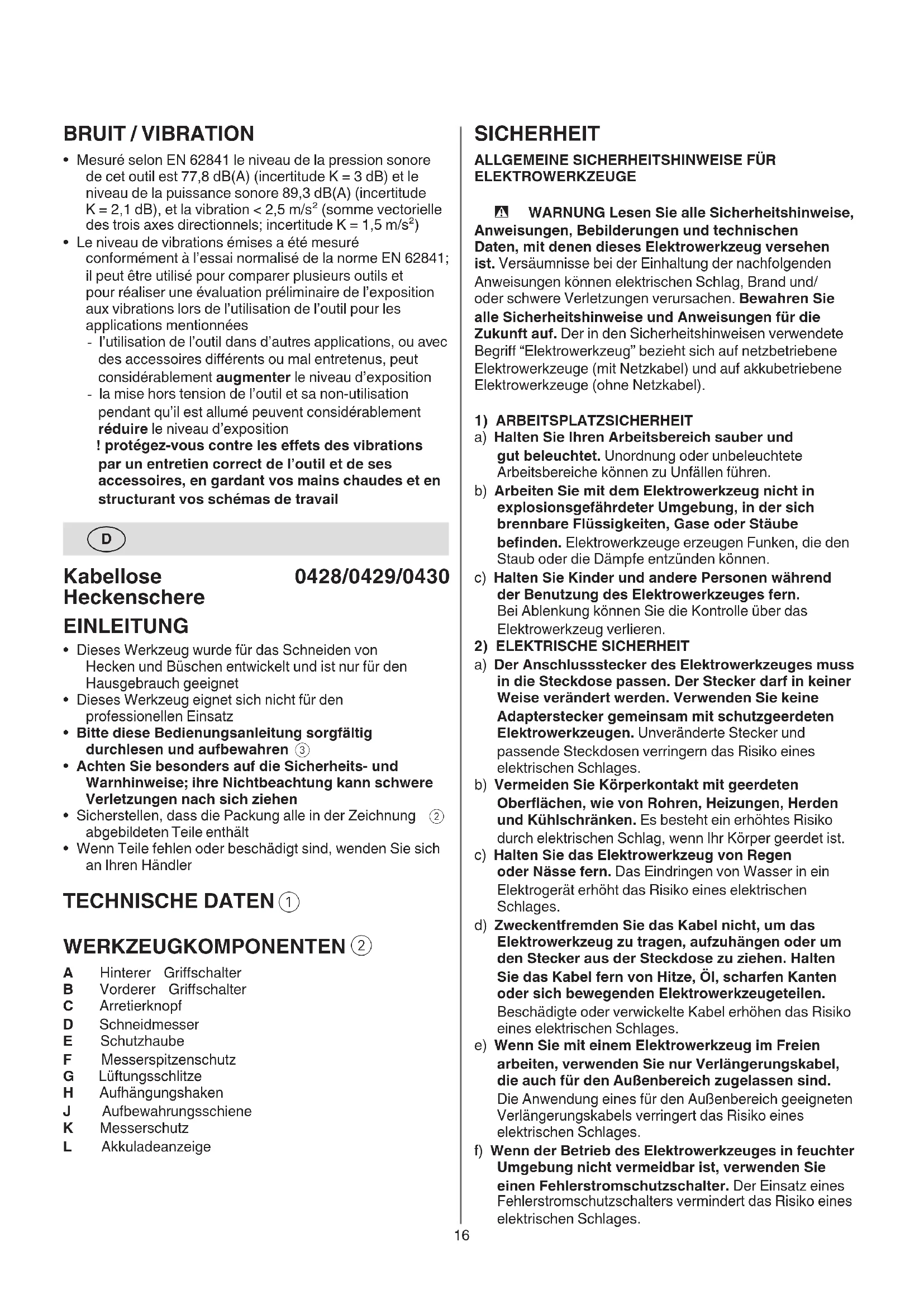 Kabellose Heckenschere 0428/0429/0430 EINLEITUNG