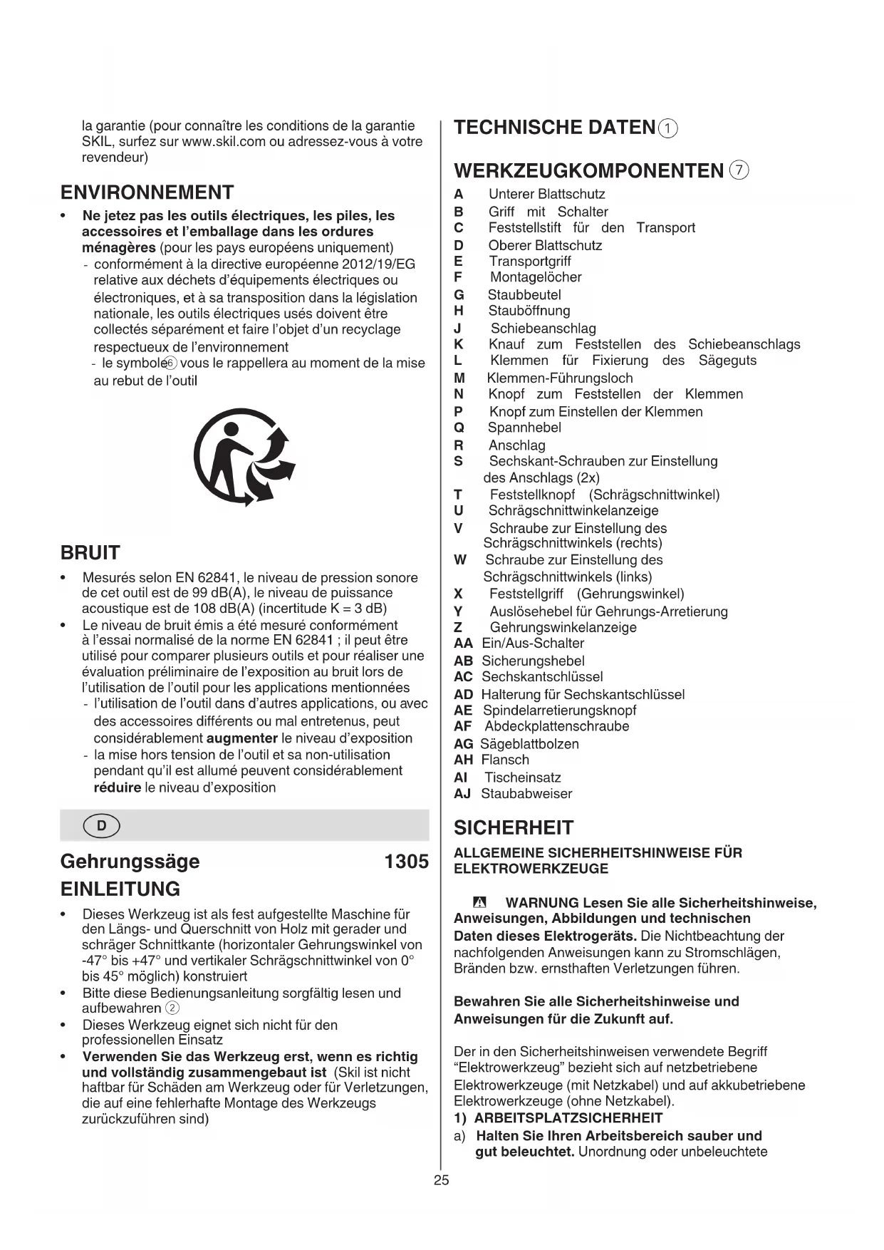 1305 AA - Säge SKIL - Kostenlose Bedienungsanleitung