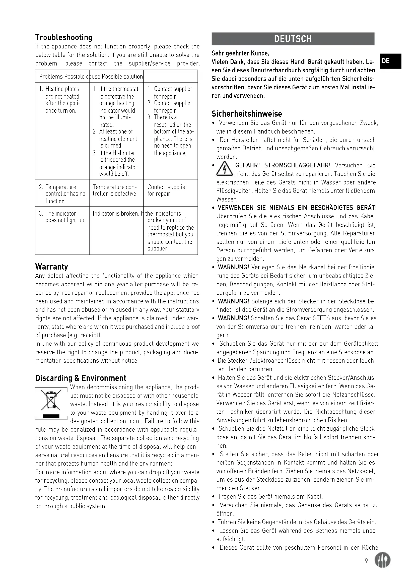 - Dieses Gerät sollte von geschultem Personal in der Küche10